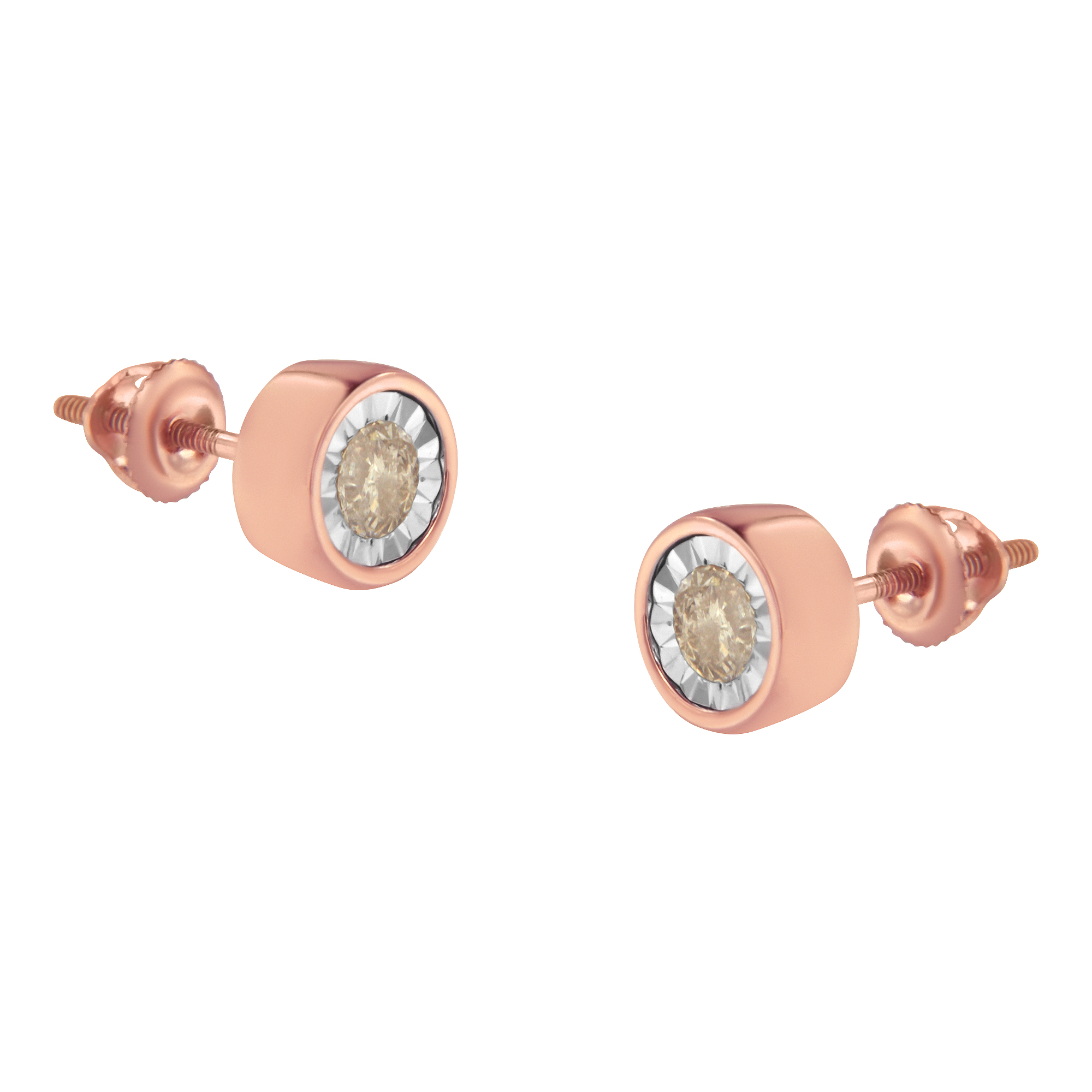 10K Rose Gold 0.40 Cttw Round Brilliant-Cut Near Colorless Diamond Miracle-Set Stud Earrings with Screw Backs (J-K Color, I2-I3 Clarity)