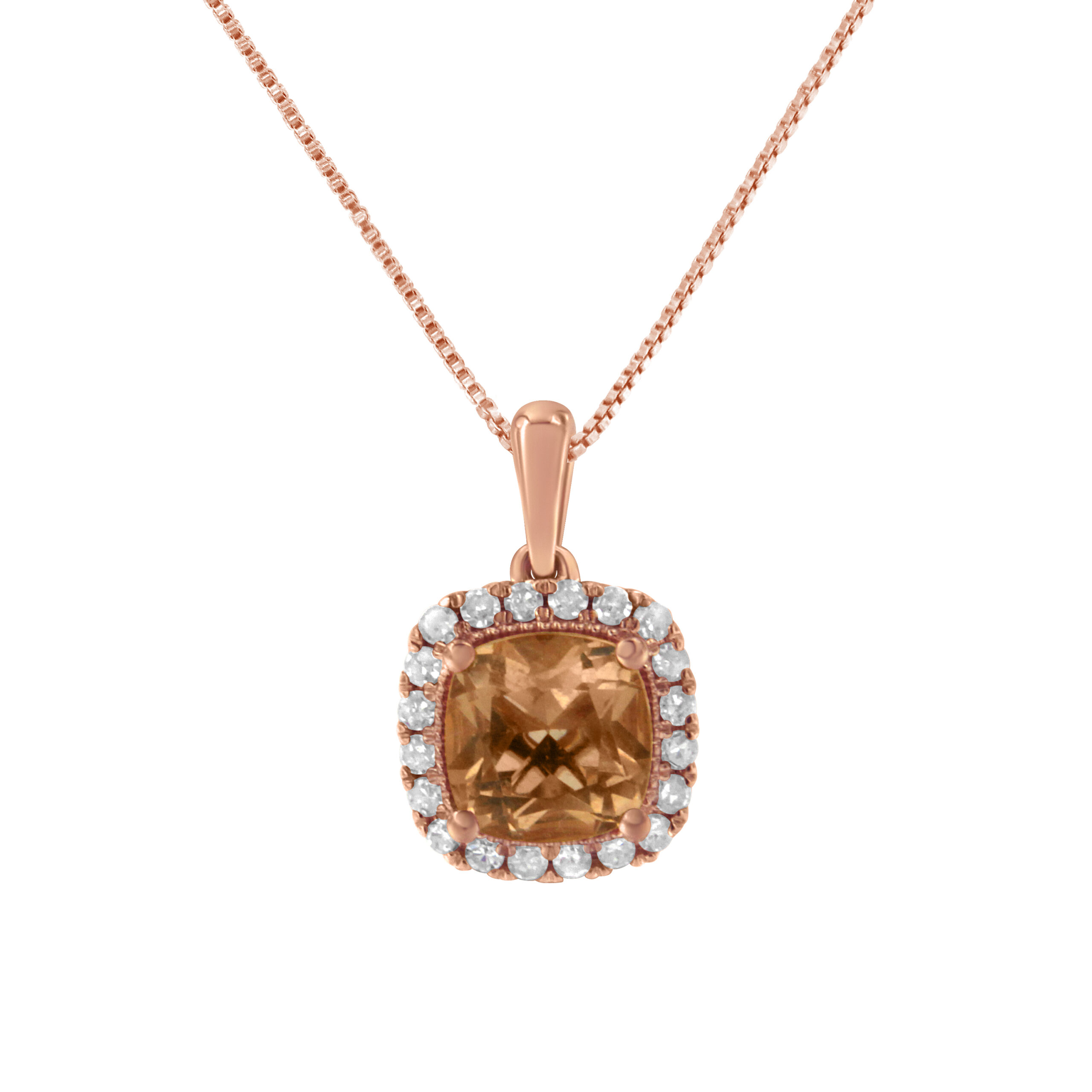 10K Rose Gold 1/4ct Diamond and 8MM Peach Morganite Gemstone Square Pendant (H-I, I1-I2)