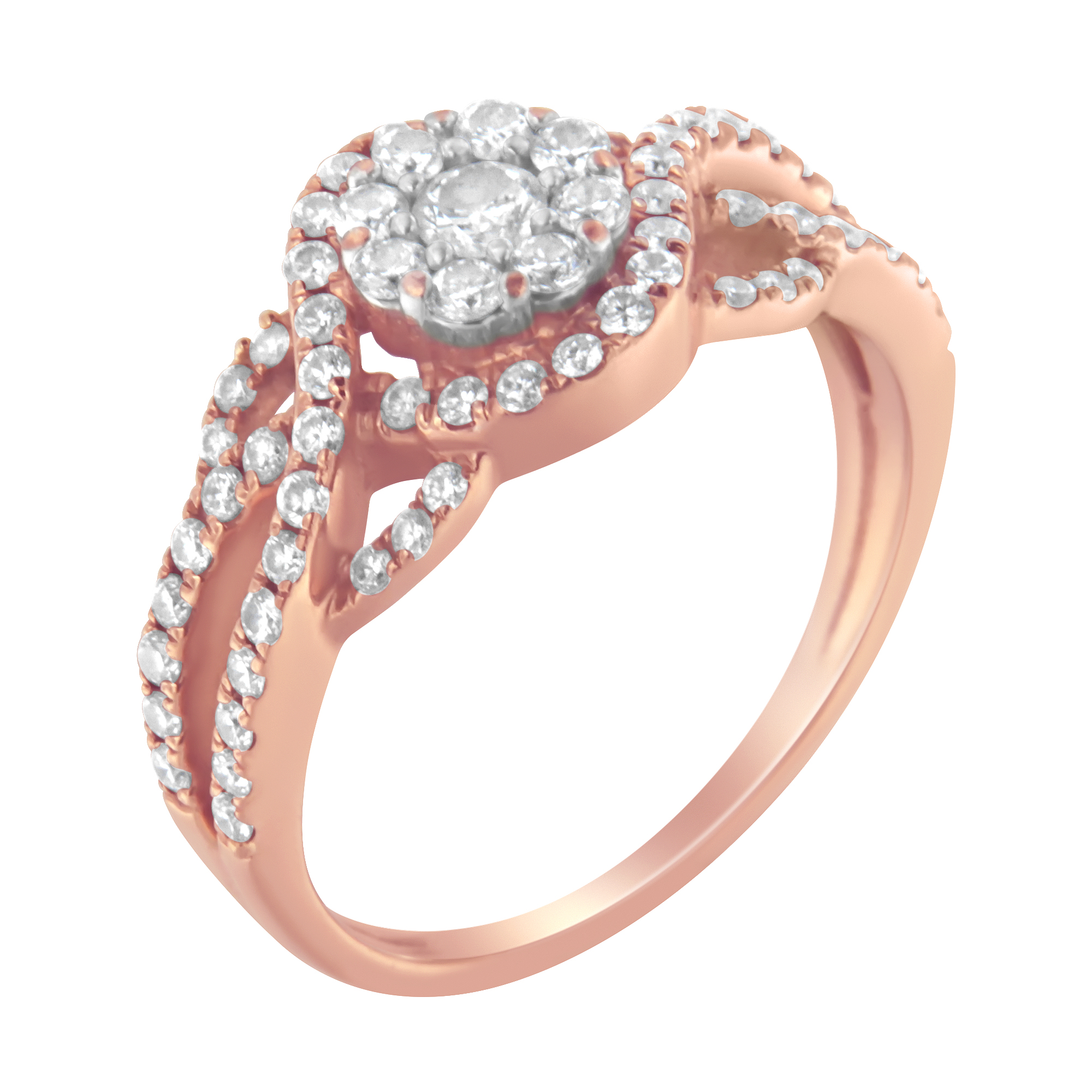 10K Rose Gold 3/4 Cttw Diamond Floral Cluster Head and Twisted Shank Cocktail Ring (H-I Color, SI1-SI2 Clarity)- Size 9