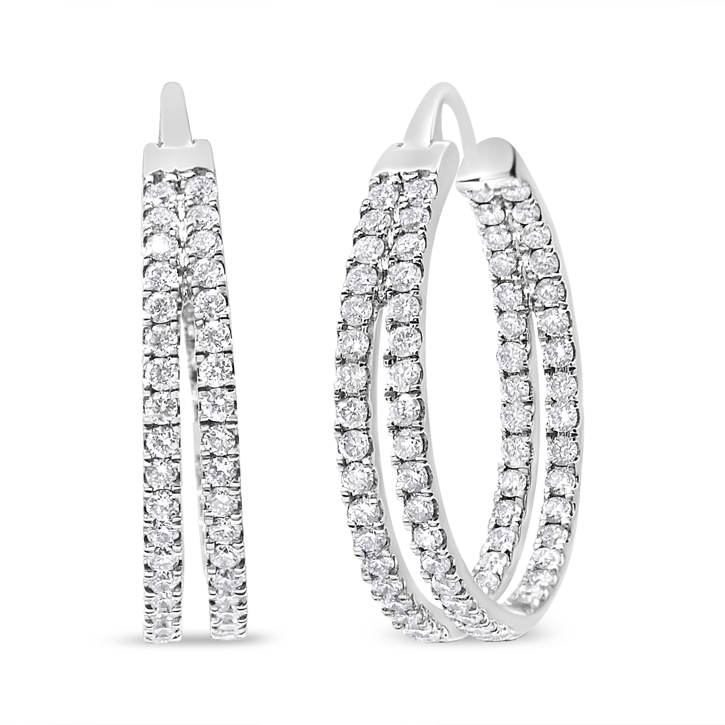 10K White Gold 1 1/2 Cttw Lab Grown Diamond Inside Out Double Row Split Criss Cross 3/4″ Inch Hoop Earrings (G-H Color, SI1-SI2 Clarity)