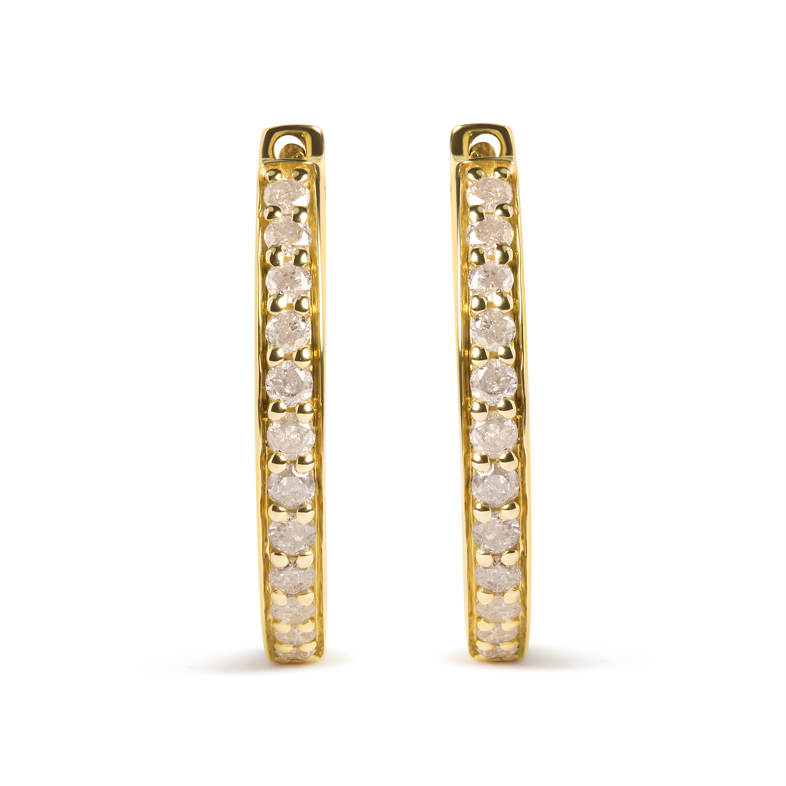 10K Yellow Gold 1/2 Cttw Round-Cut Diamond Hoop Earrings (I-J Color, I2-I3 Clarity)