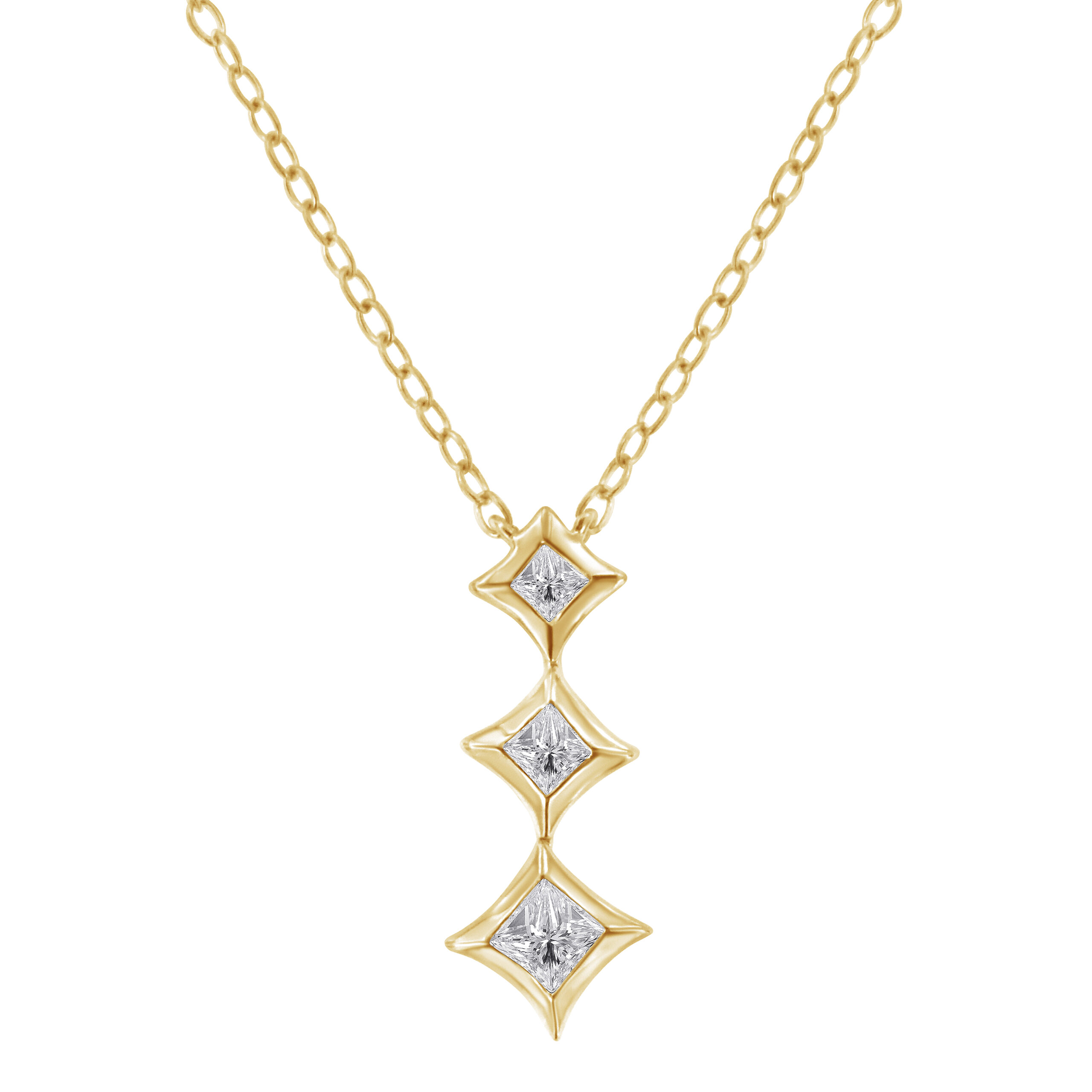 10K Yellow Gold 1/5 Cttw Princess Cut Diamond 3 Stone Drop 18″ Pendant Necklace (H-I Color, SI2-I1 Clarity)