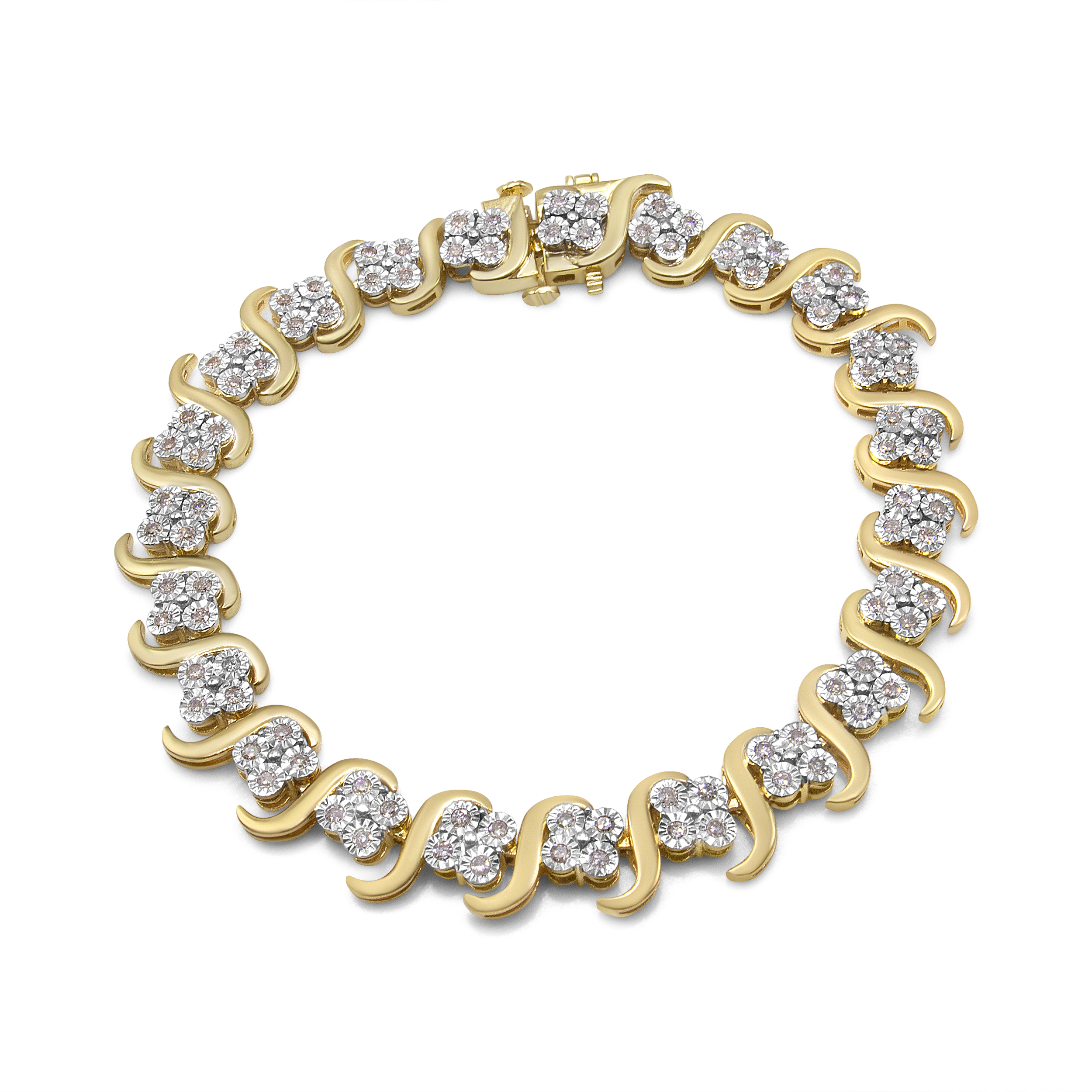10K Yellow Gold Plated .925 Sterling Silver 1.0 Cttw Diamond “S” Link 7.25″ Bracelet (J-K Color, I1-I2 Clarity)