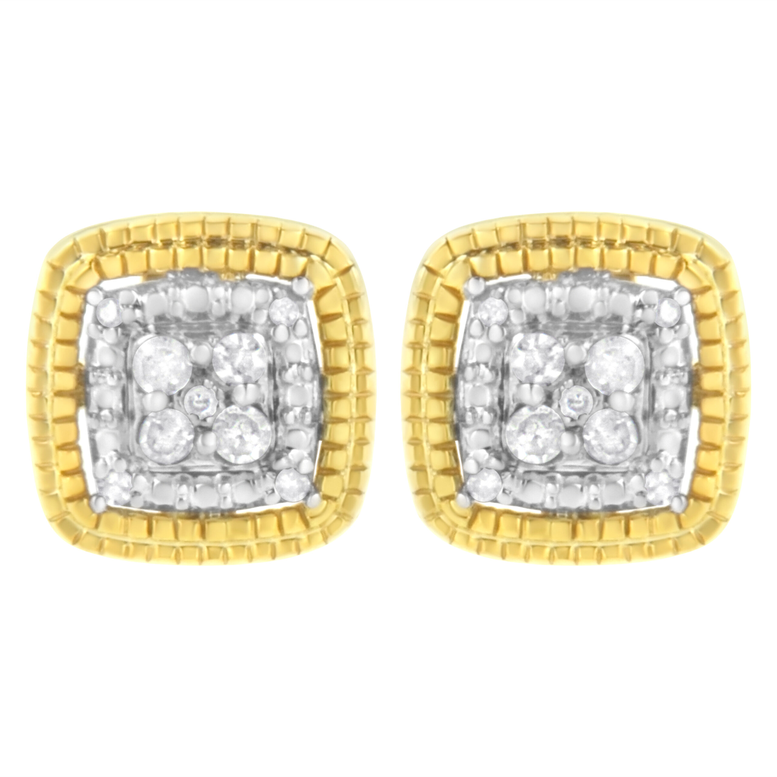 10K Yellow Gold Plated .925 Sterling Silver 1/10 Cttw Prong-Set Round Cut Diamond Square Shape with Milgrain Halo Stud Earrings (I-J Color, I2-I3 Clarity)