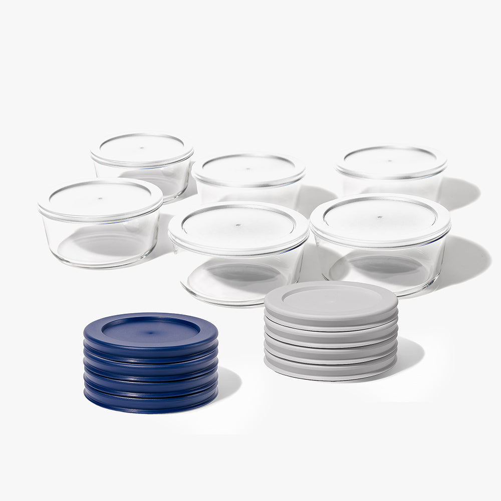 • Set Includes: (6) 4-cup capacity glass food containers, (6) BPA-free plastic lids for secure sealing and freshness, with additional multi color lids to mix and match your set!