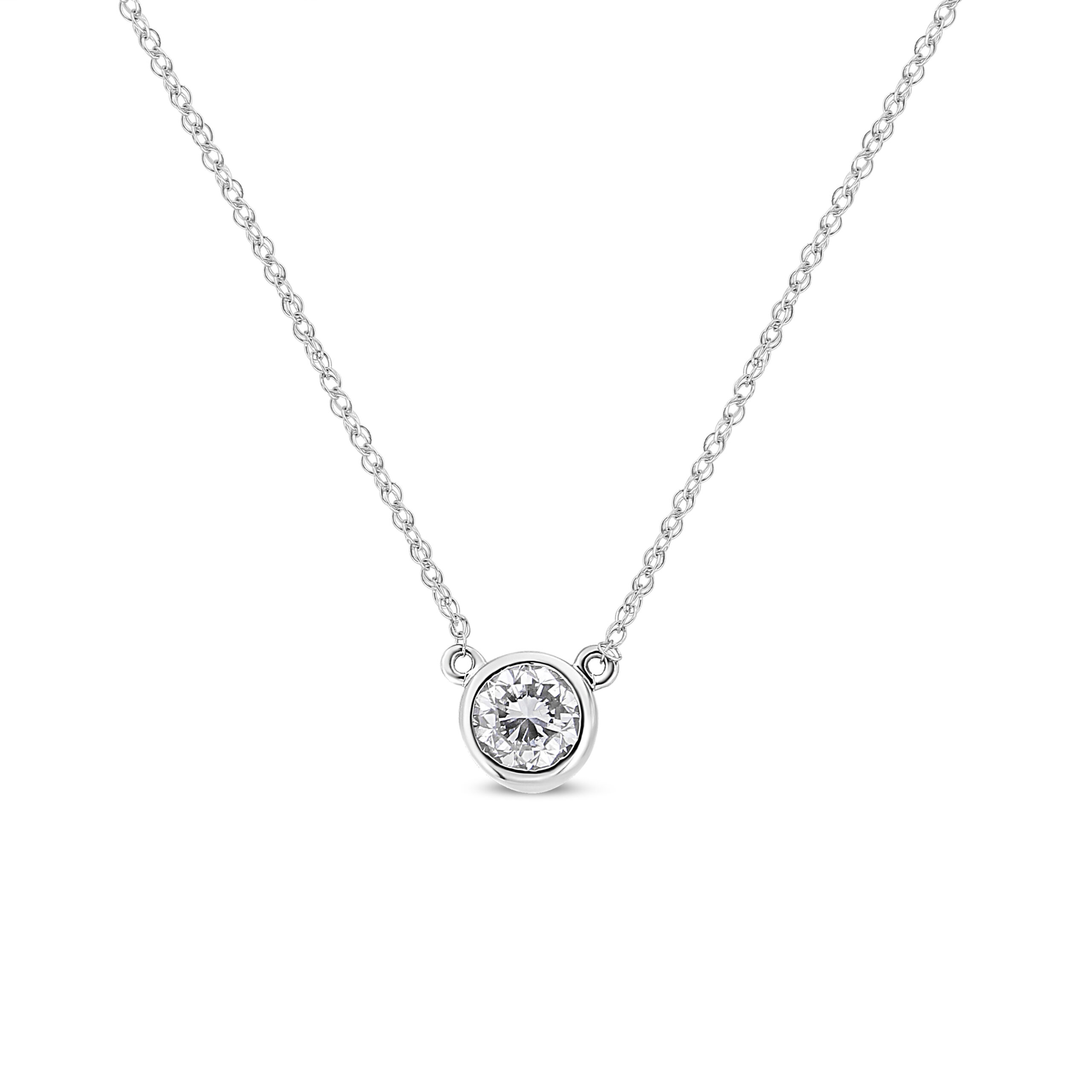 14K White Gold 1.0 Cttw Round Brilliant-Cut Diamond Modern Bezel-Set Solitaire Adjustable 16″-18″ Pendant Necklace (G-H Color, SI1-SI2 Clarity)