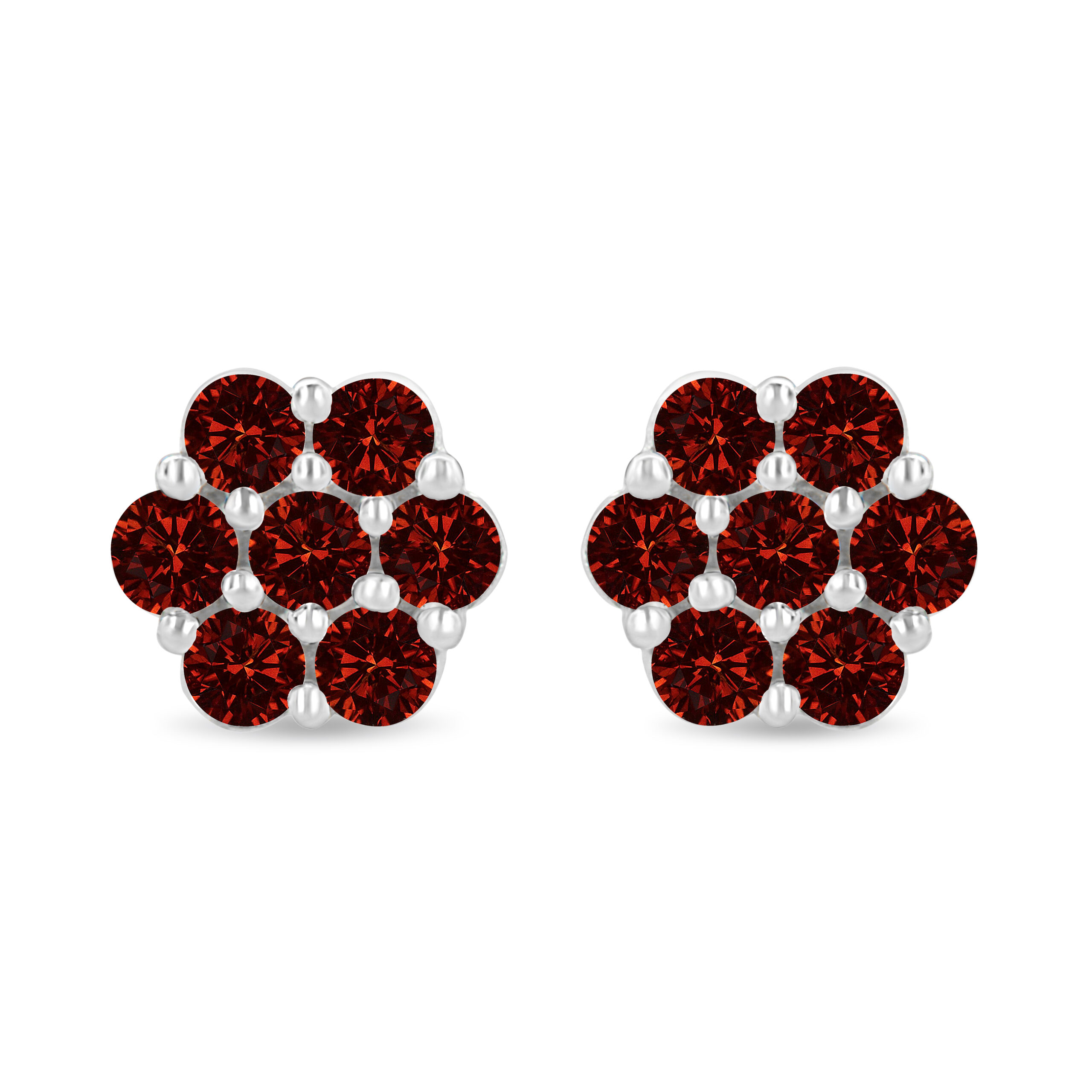 14K White Gold 1.0 Cttw Treated Red Diamond Prong Set 7 Stone Floral Stud Earrings (Treated Red Color, SI2-I1 Clarity)