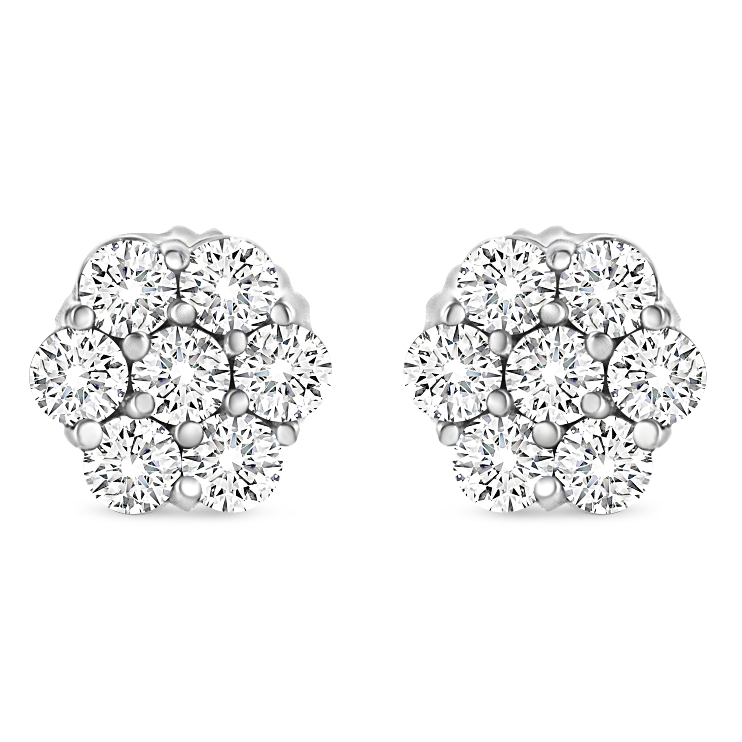 14K White Gold 1/3 Cttw Floral Cluster Diamond Stud Earrings with Screw backs (I-J Color, SI2-I1 Clarity)