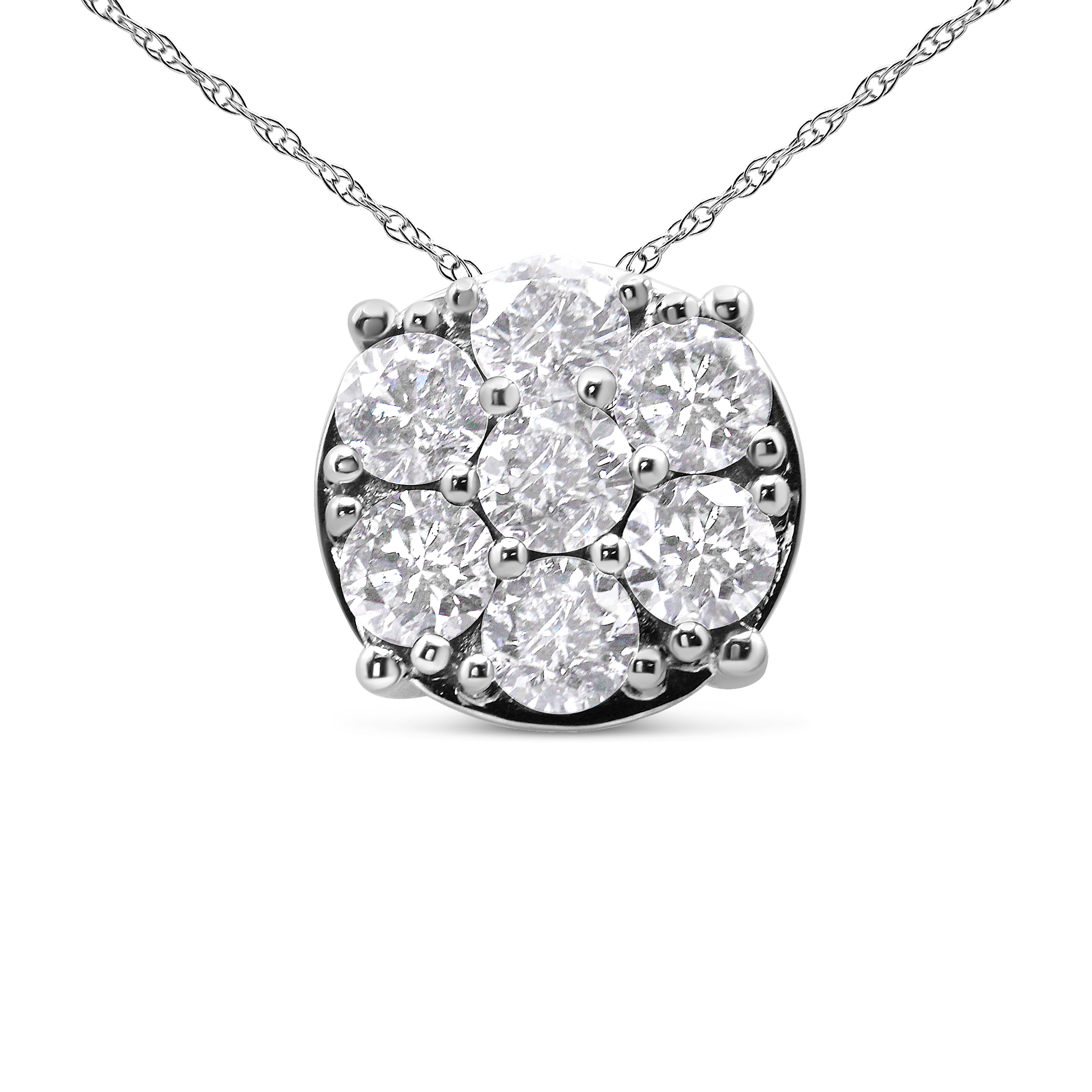 14K White Gold 2 1/3 Cttw Diamond 7 Stone Floral Cluster 18″ Pendant Necklace (H-I Color, I1-I2 Clarity)