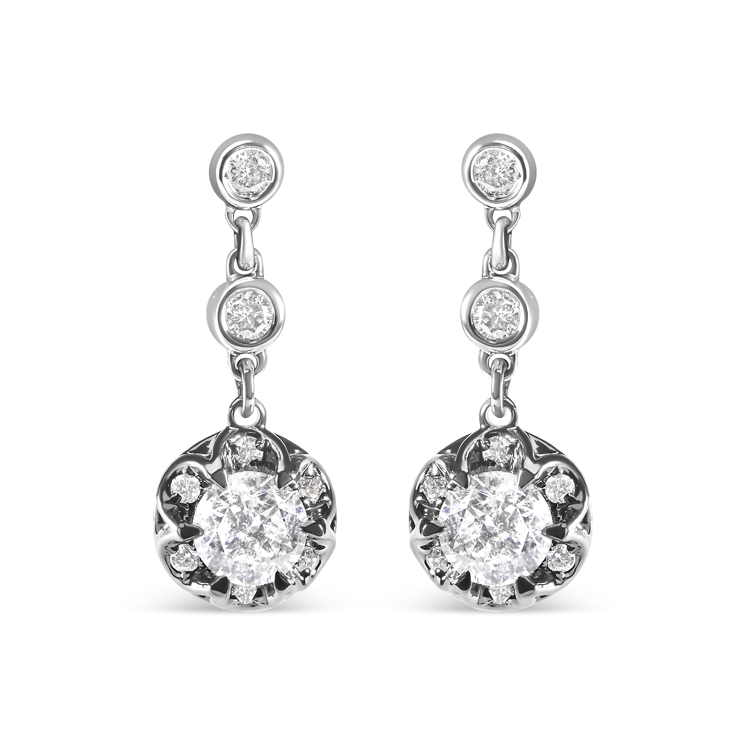 14k White Gold 5/8 Cttw Diamond Halo Drop and Dangle Earrings Stud with Bale (I-J Color, I1-I2 Clarity)