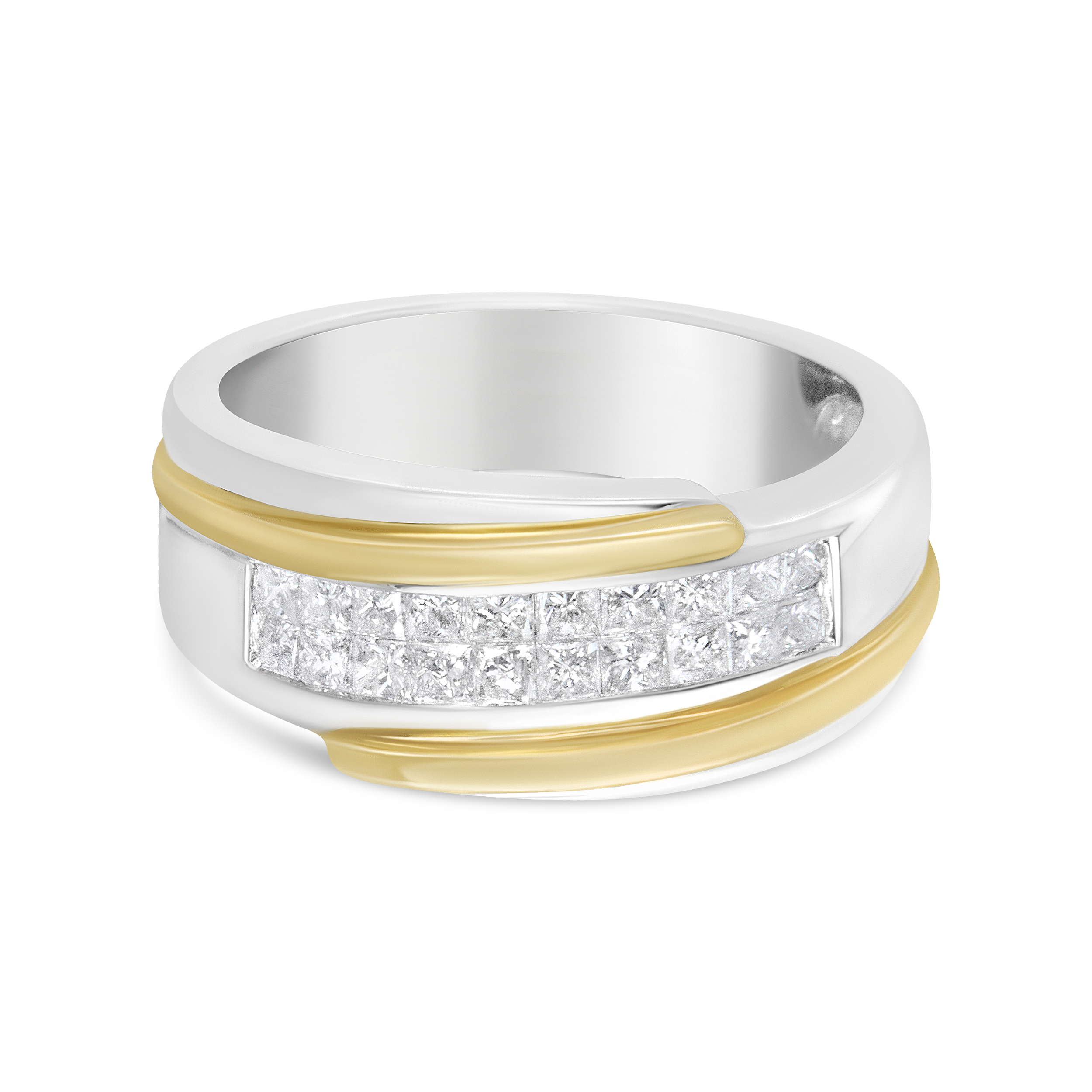 14K Yellow and White Gold 1.00 Cttw Princess-Cut Diamond Modern Gent’s Band (H-I Color, SI2-I1 Clarity) – Size 10