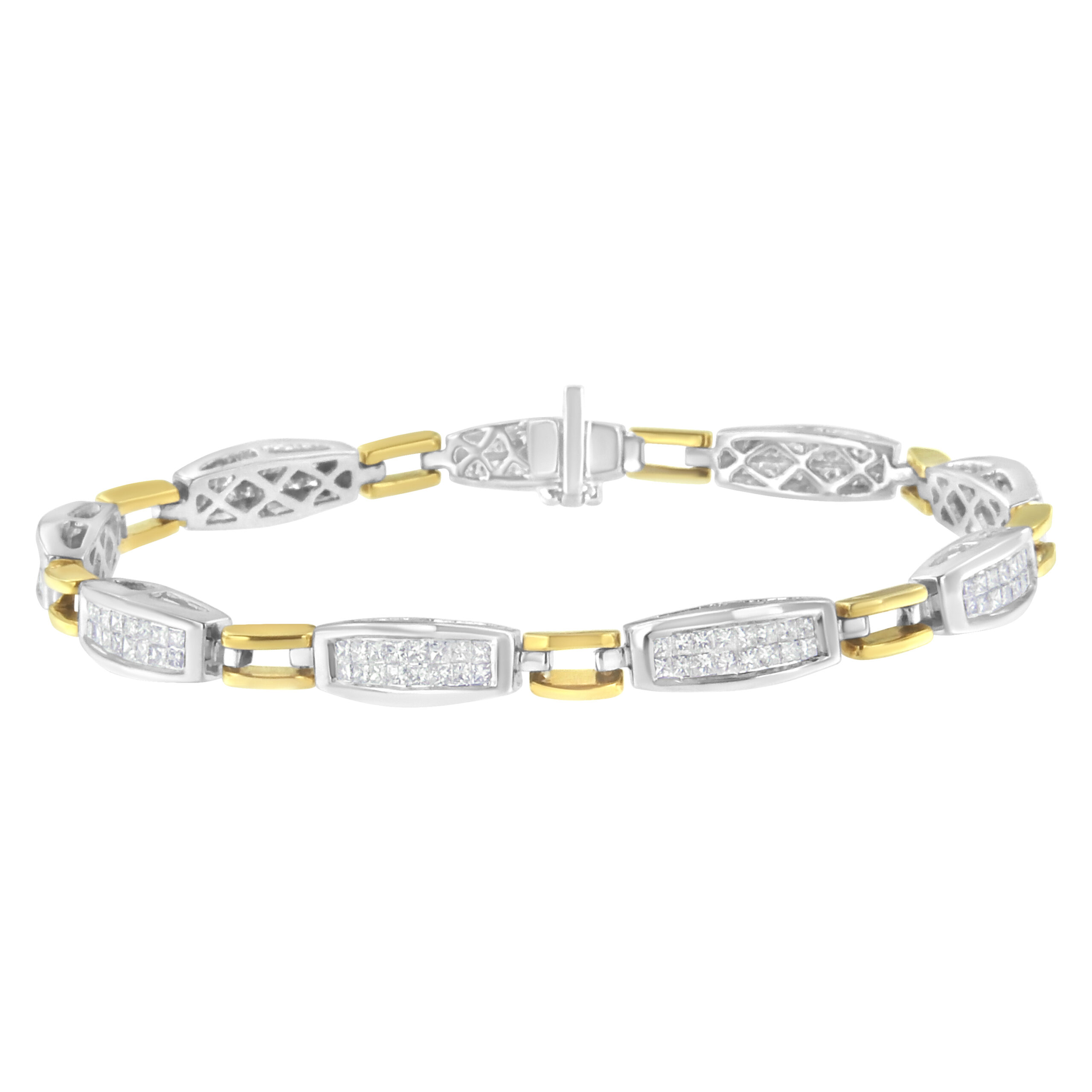 14K Yellow and White Gold 2.0 Cttw Princess Cut Diamond Tapered and Equal Sign Link Bracelet (G-H Color, SI1-SI2 Clarity) – 7″