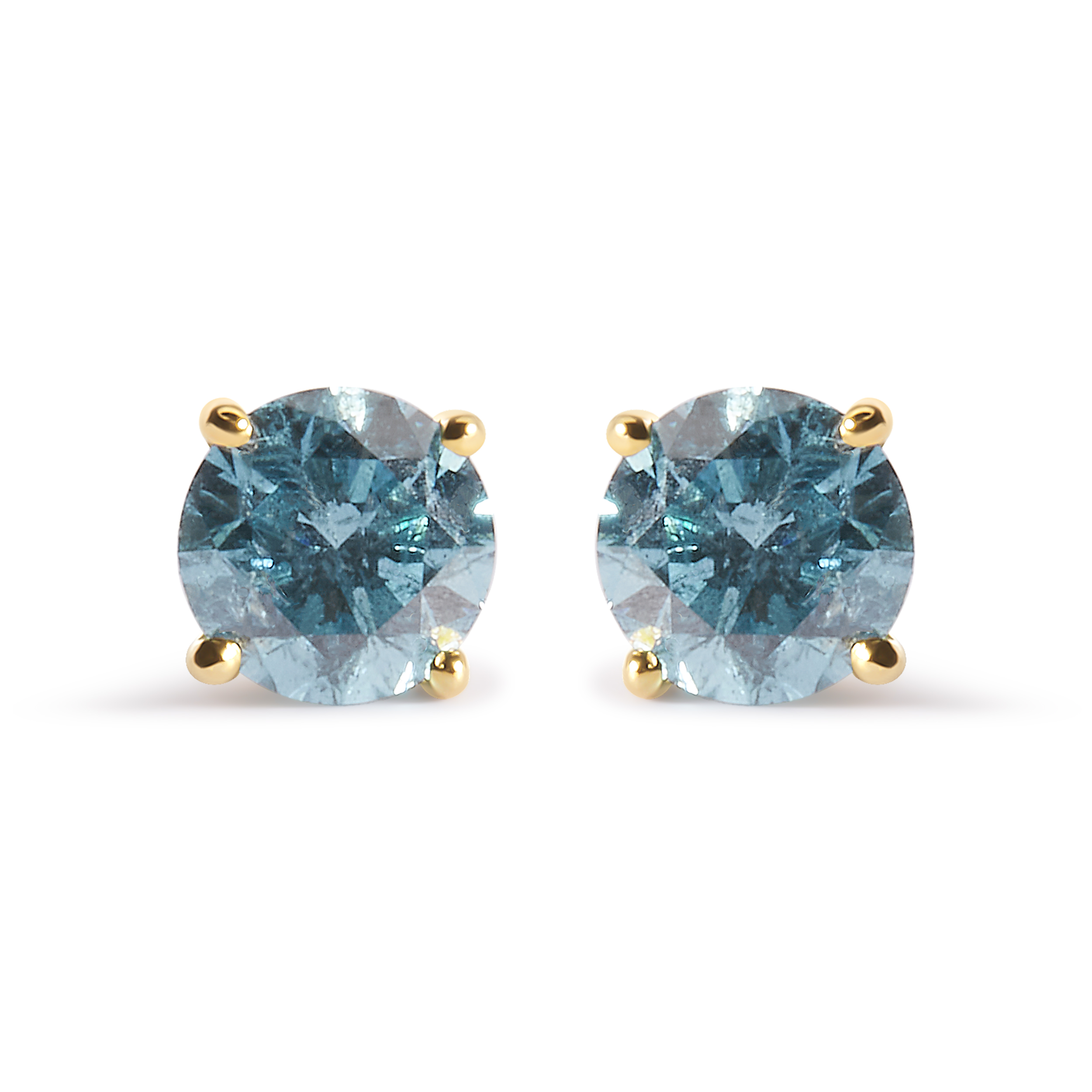 14K Yellow Gold 1.0 Cttw Treated Aqua Blue Diamond Classic Solitaire Stud Earrings (Aqua Blue Color, I2-I3 Clarity)
