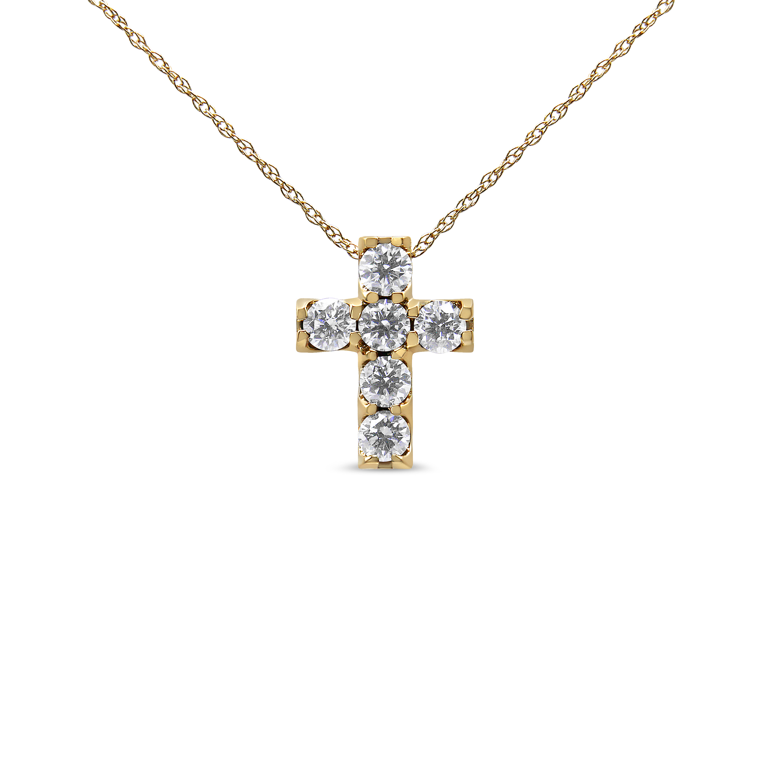 14K Yellow Gold 1/2 Cttw Round Brilliant Cut Diamond Mini Cross 18″ Pendant Necklace (J-K Color, VS2-SI1 Clarity)