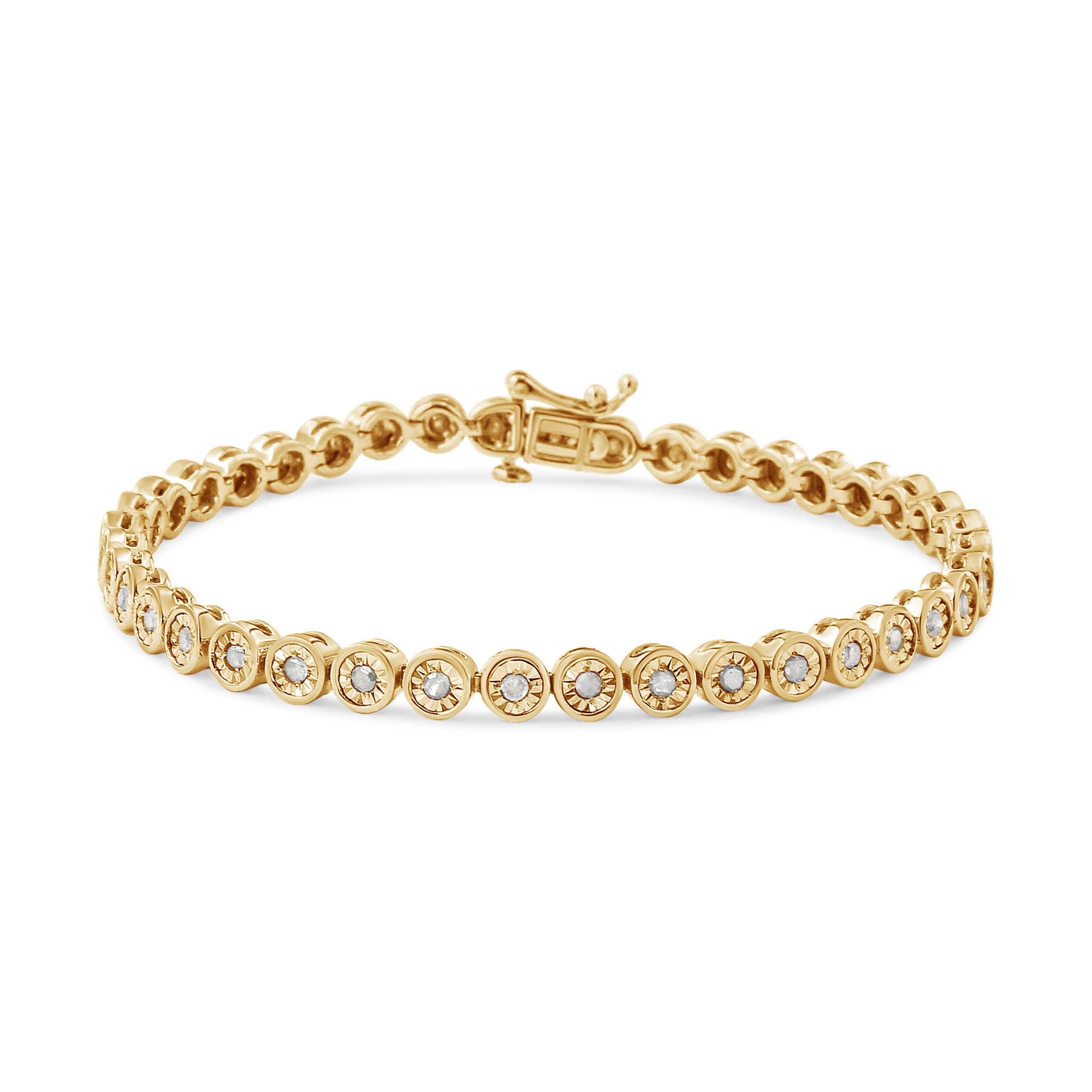 14K Yellow Gold Plated .925 Sterling Silver 1.0 cttw Miracle Plate Set Diamond Design Tennis Bracelet (I-J Color, I3 Clarity)