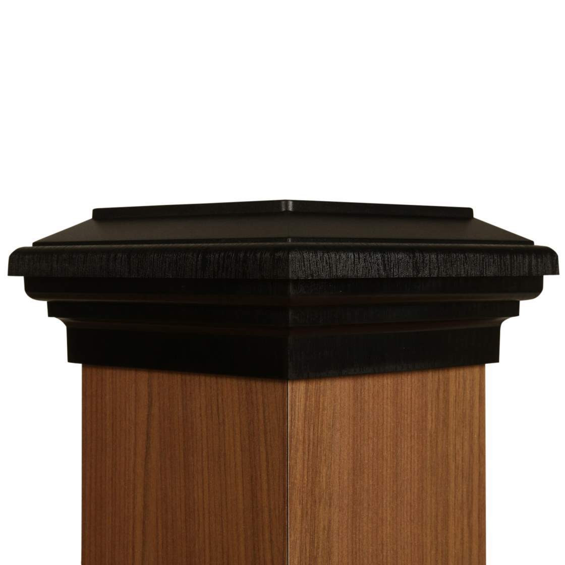 Our black flat top (plateau) series 6×6 post caps come in two sizes: Nominal (or Standard) and Actual (or True.) The lumber industry uses these two terms to distinguish between their different measurements. Nominal (also called Standard) refers to planks that were cut when they were still rough and green (not yet dried.) Timber that is labeled with the nominal designation may have two measurements on its tag. The second measurement is the accurate one because it accounts for the shrinkage that occurs during drying. Actual (or true) refers to wood that was cut after it dried. Any plank that is labeled with the word Actual is true to size. If the label says the wood is 6×6, then the label is accurate.