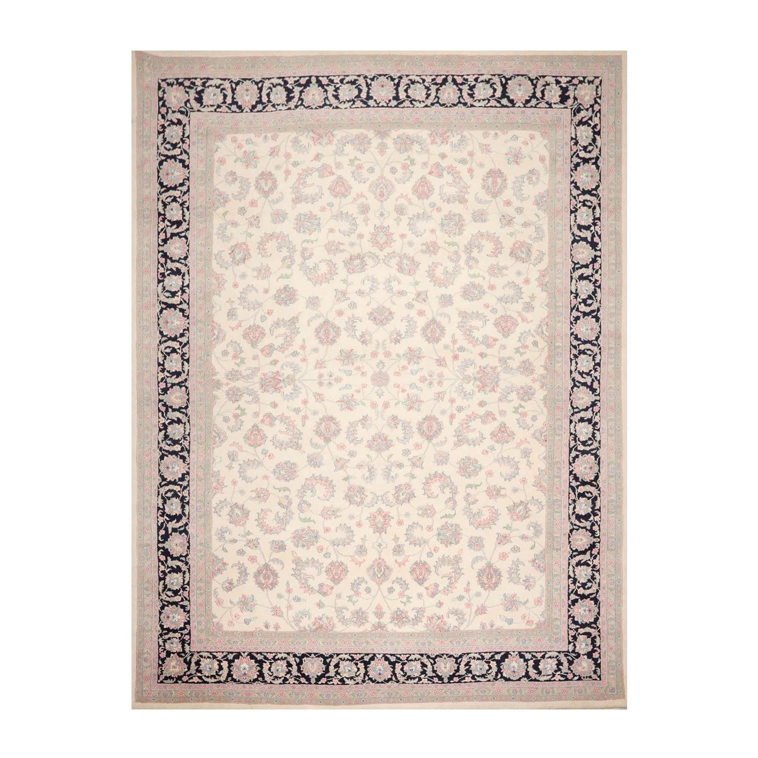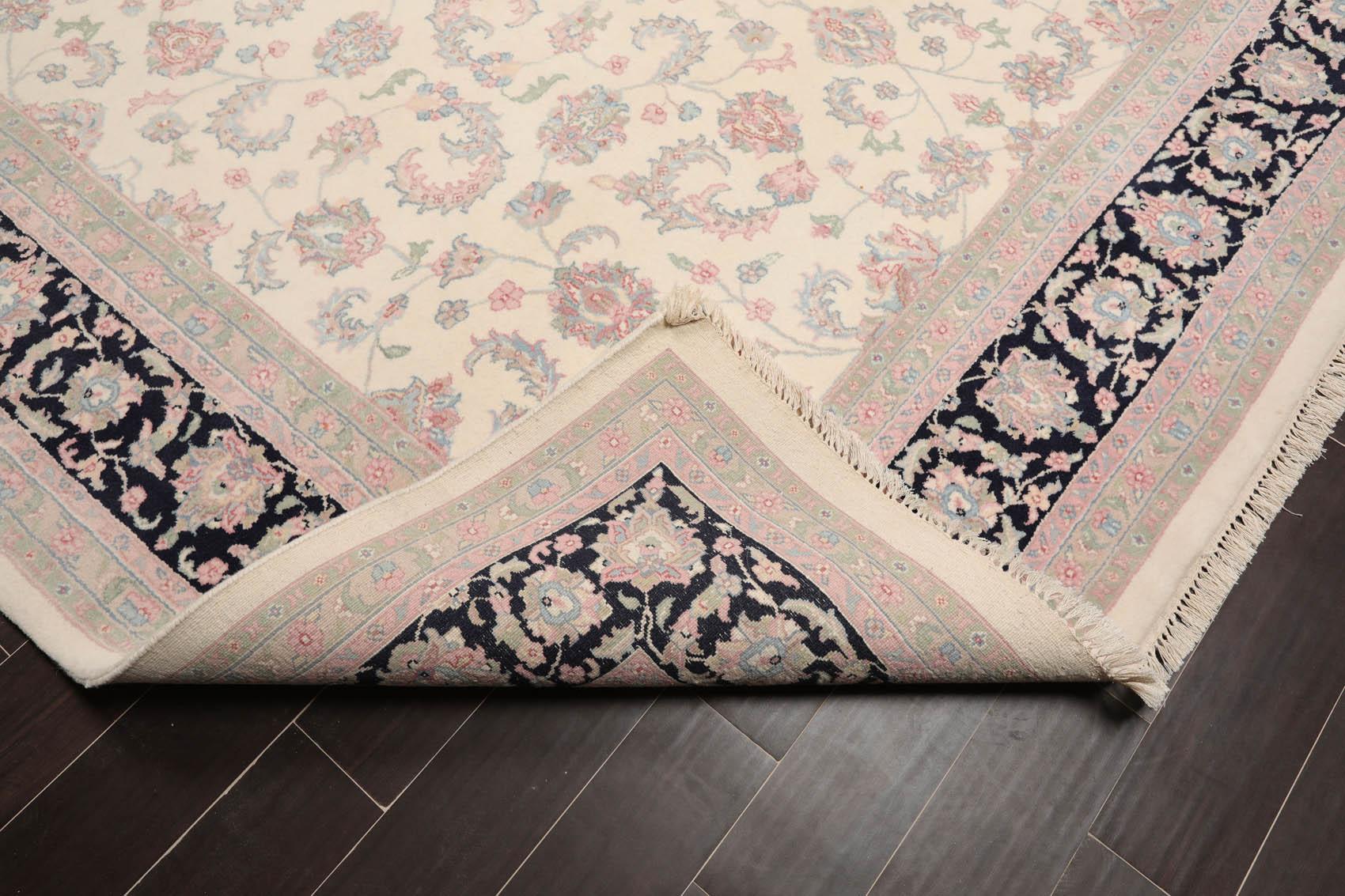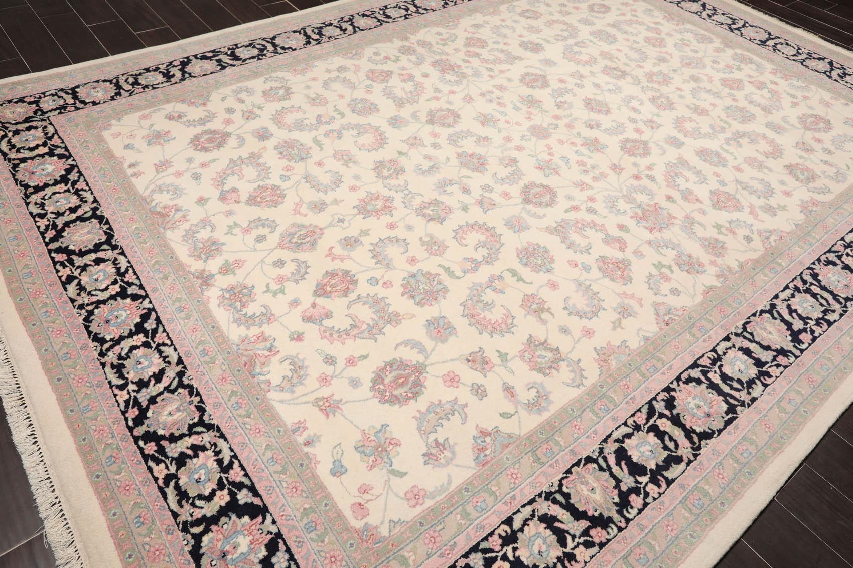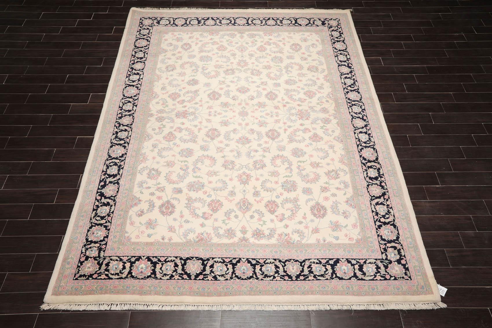 8’10” x 12’3″ Hand Knotted Traditional Superfine Wool Oriental Area Rug Ivory