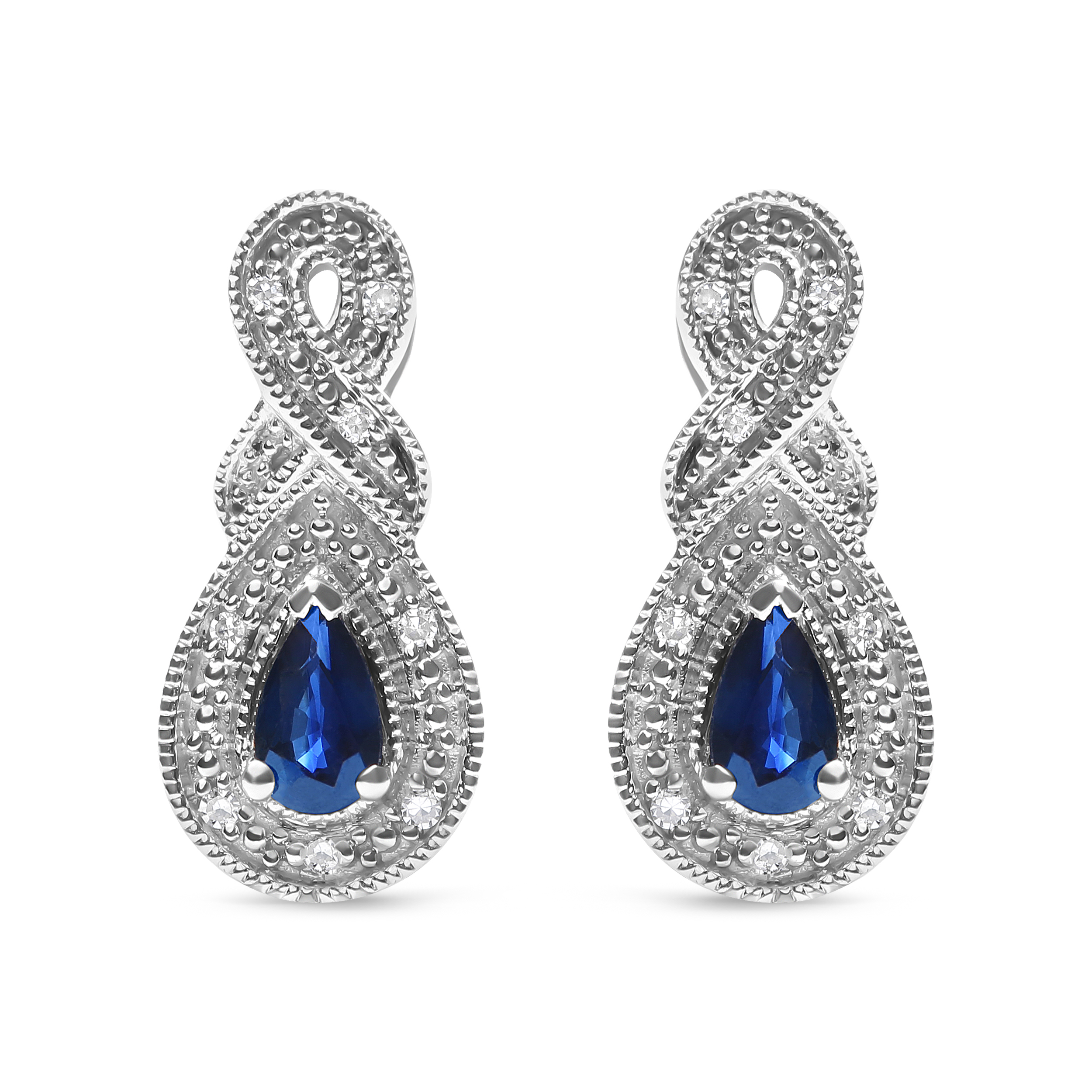 .925 Sterling Silver 4.5 x 3mm Pear Sapphire Gemstone and Diamond Accent Infinity Drop Stud Earrings (H-I Color, SI1-SI2 Clarity)