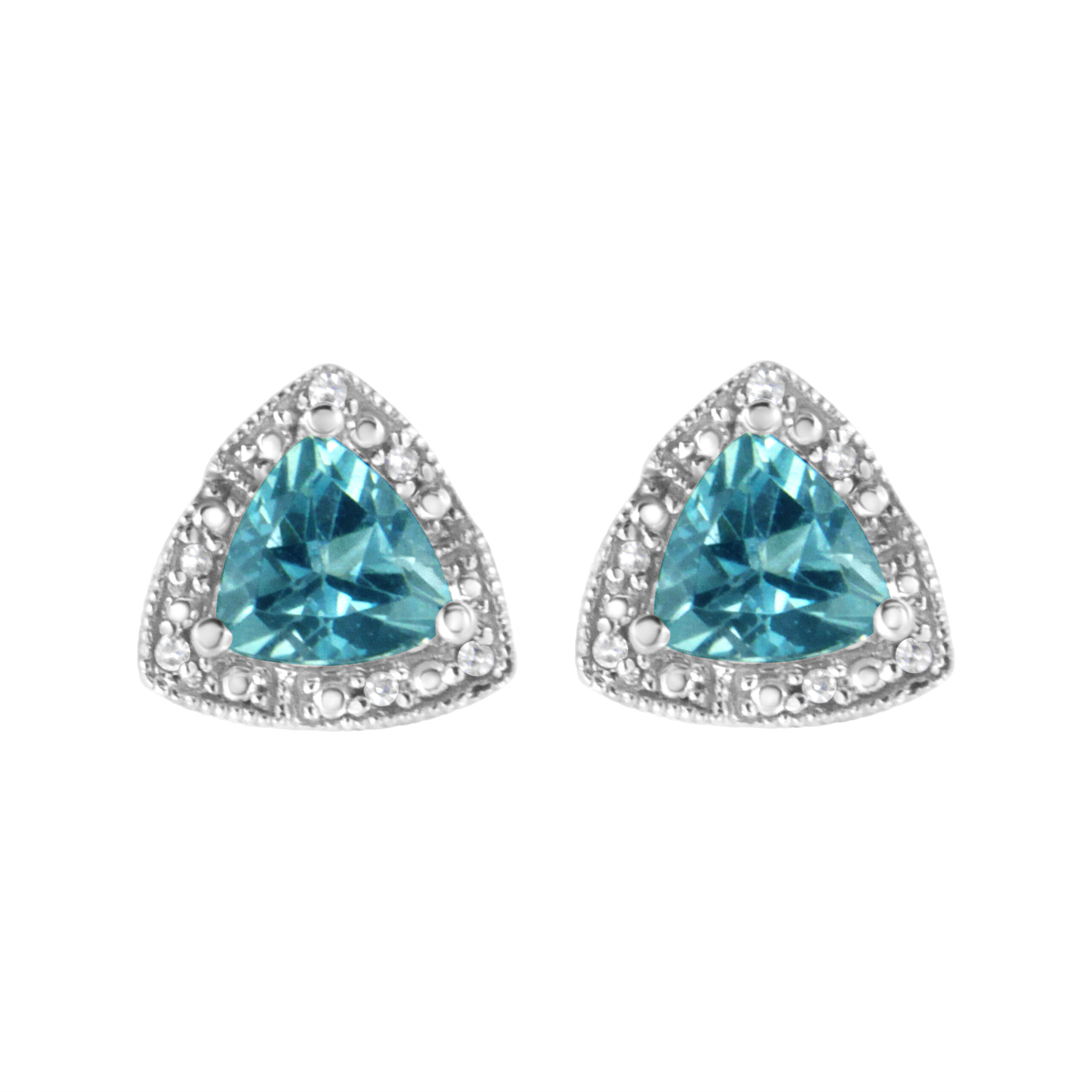.925 Sterling Silver 6×6 mm Trillion Cut Blue Topaz Gemstone and Diamond Accent Stud Earring (I-J Color, I1-I2 Clarity)