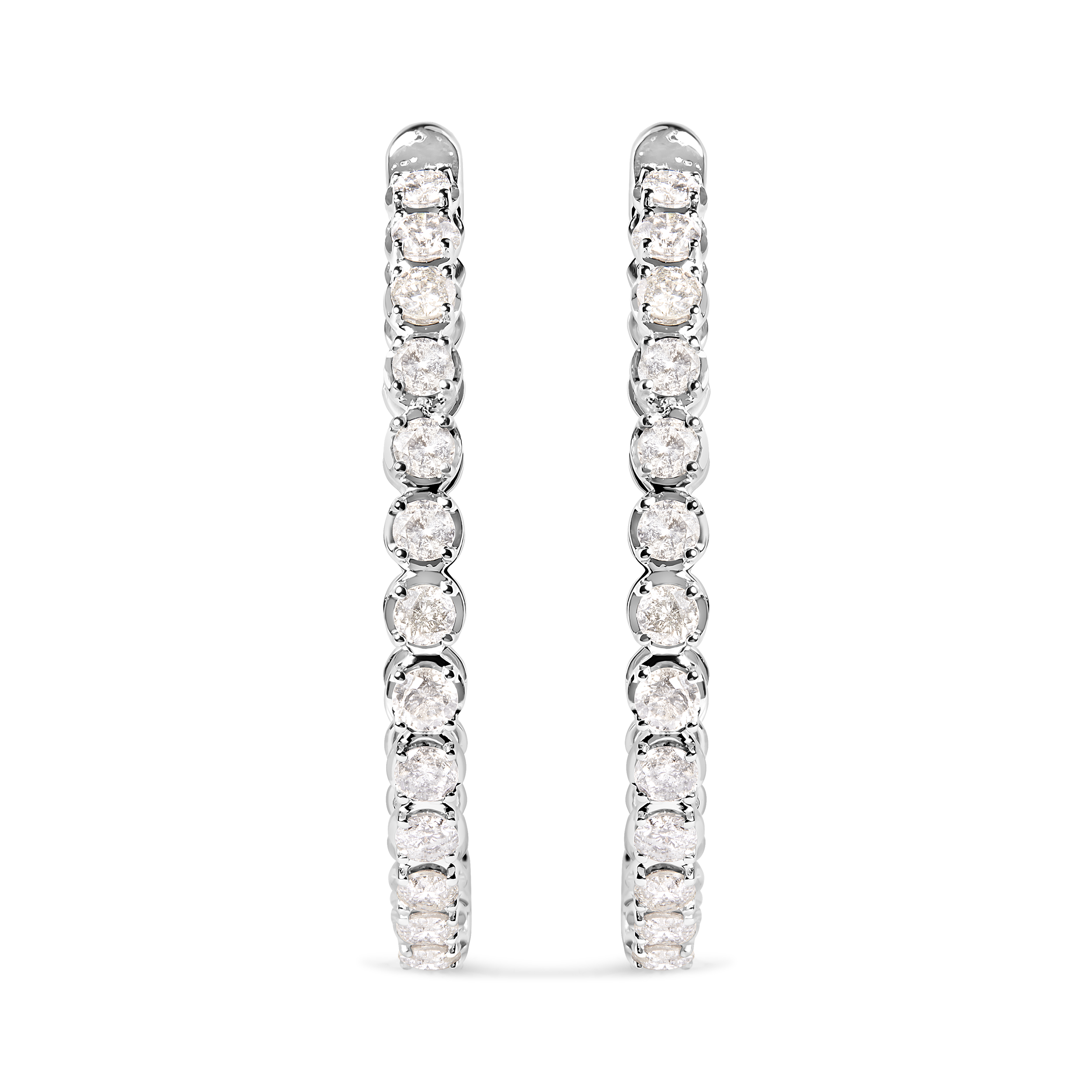 .925 Sterling Silver 7.0 Cttw Diamond 1-¾ Inside Out Hinged Leverback Hoop Earrings (I-J Color, I1-I2 Clarity)