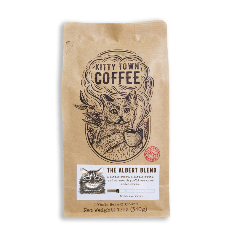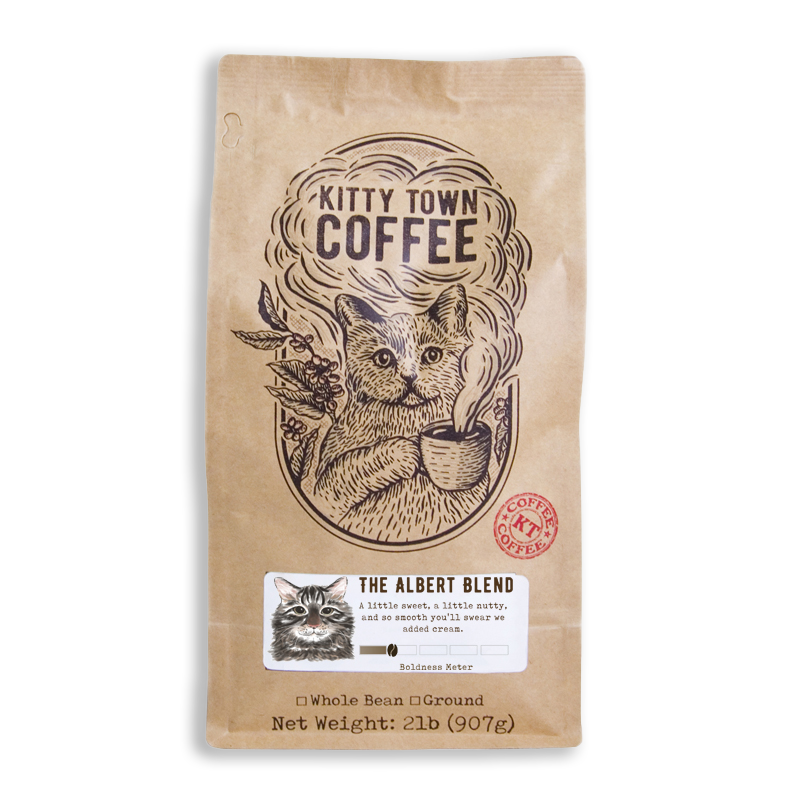 Our most popular Kitty Town blend: a little nutty, a little sweet, and so smooth you’d swear we added cream. The Albert Blend will be one of the smoothest coffees you’ve ever tasted. If you find yourself watering down your coffee or adding a lot of cream, this is the perfect blend for you.