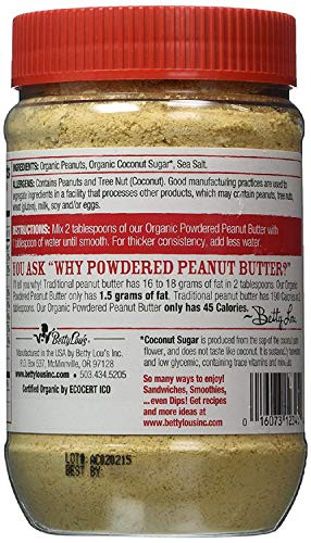 Go natural with Just Great Stuff Organic B.L Powdered Peanut Butter (12×6.5 OZ). 100% natural. Simply delicious. Naturally sweetened. Just add water. Non GMO. Certified gluten-free. 85% less fat than traditional peanut butter. USDA organic. IC certified organic. What is Coconut Sugar? Coconut sugar is produced from the sap of the coconut palm flower and does not taste like coconut. This 100% organic, sustainably harvested natural sweetener has a lower glycemic index that cane sugar and contains essential vitamins and minerals. Just Great Peanut Butter is a healthier alternative to traditional peanut butter. We use perfectly roasted, premium peanuts for superb flavor. Enjoy this low-fat product as a post-workout snack! Make delicious, healthy sandwiches for your kids’ lunch. Great in shakes! Take it camping or on picnics. Great with honey! 100% organic – certified by Indiana Certified Organic, LLC. Low fat. No cholesterol. Low sodium. Only 4 net carbohydrates. Manufactured in the USA. . (Note: Description is informational only. Please read the ingredient label on the product for more information and always consult your health professional with any questions prior to use.)