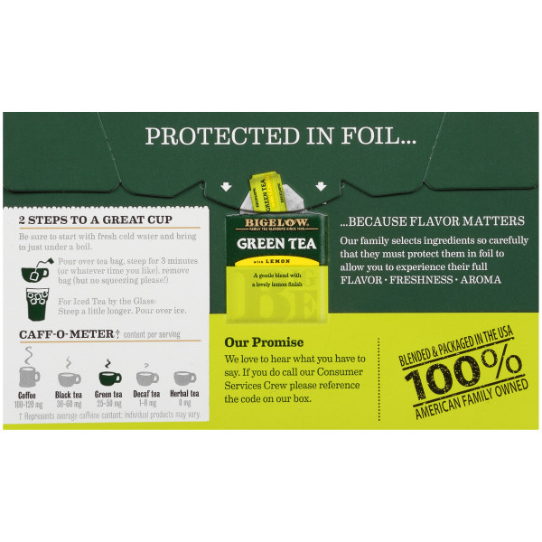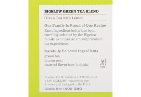 One Of The Fastest Growing Teas In Popularity Today Is Green Tea. Here Bigelow Presents A Delightful Variation On This Oriental Favorite — Green Tea With Lemon. The Refreshing Taste Of Lemon Adds A Zesty Note To The Delicate Flavor Of Green Tea.: