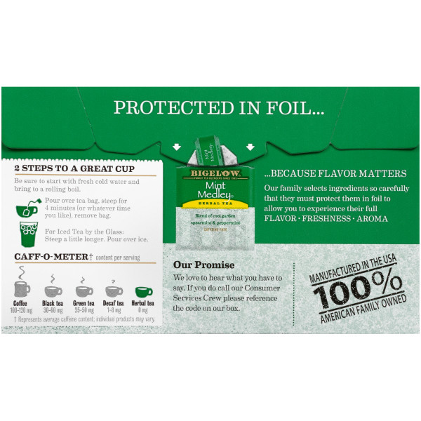 Bigelow Mint Medley Herbal Tea 20 tea Bags (Pack of 6 Boxes)