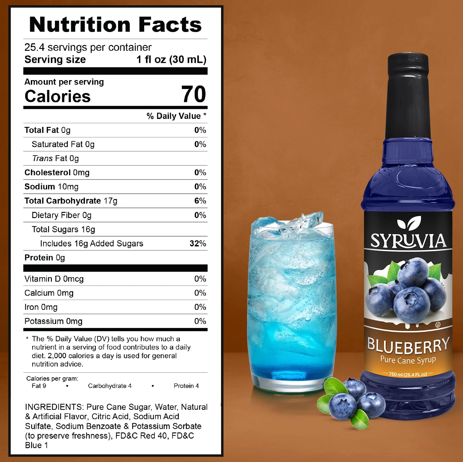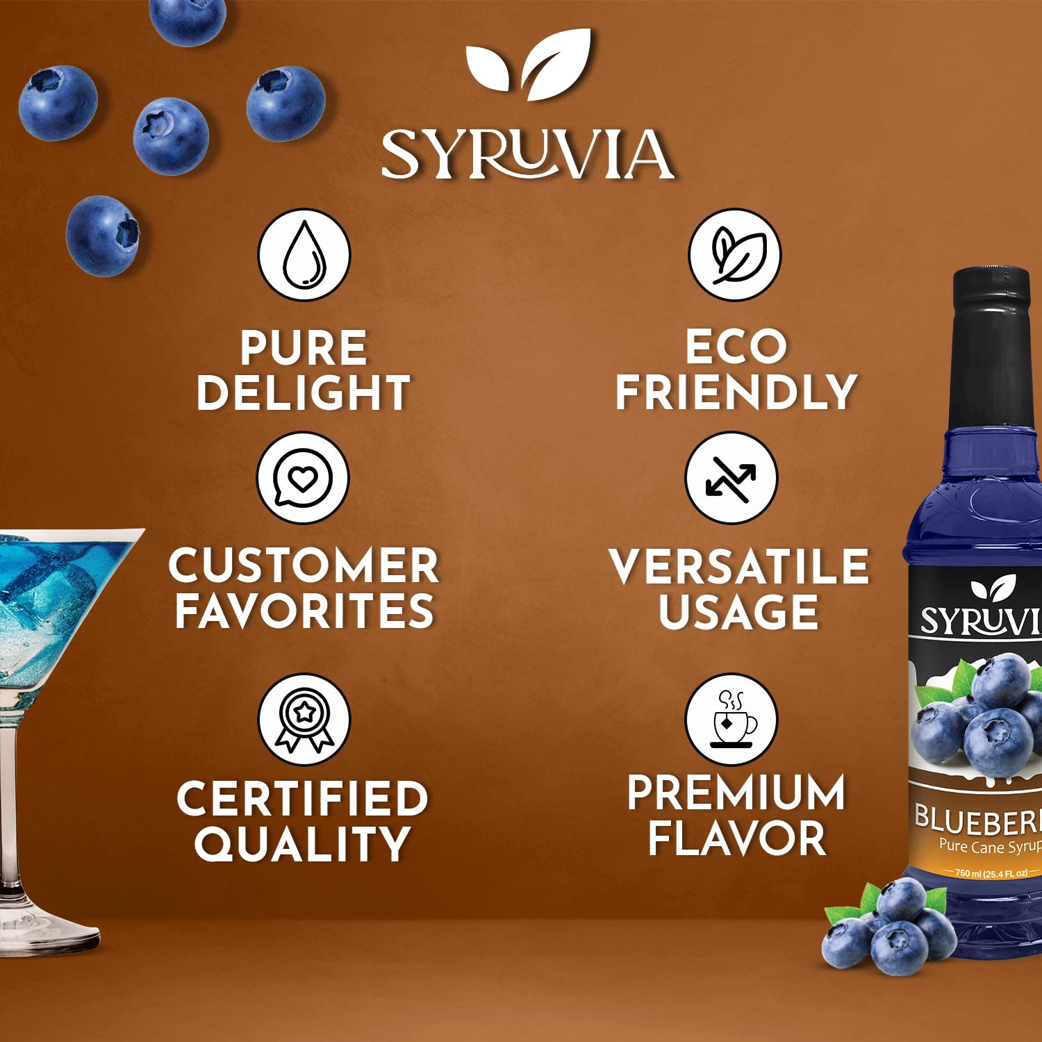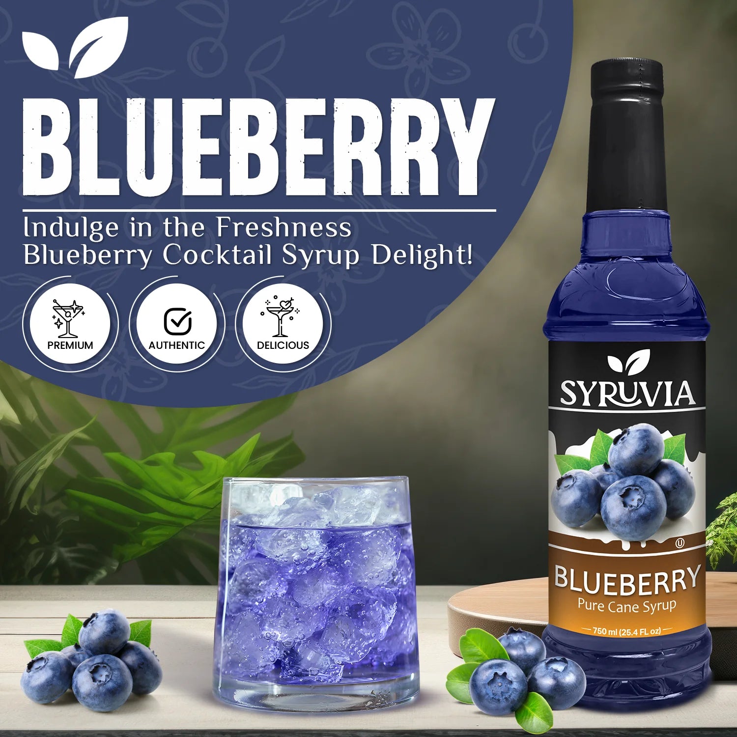 - Pure Cane Sugar: Syruvia Blueberry Syrup is sweetened with pure cane sugar, offering a natural, smooth sweetness.