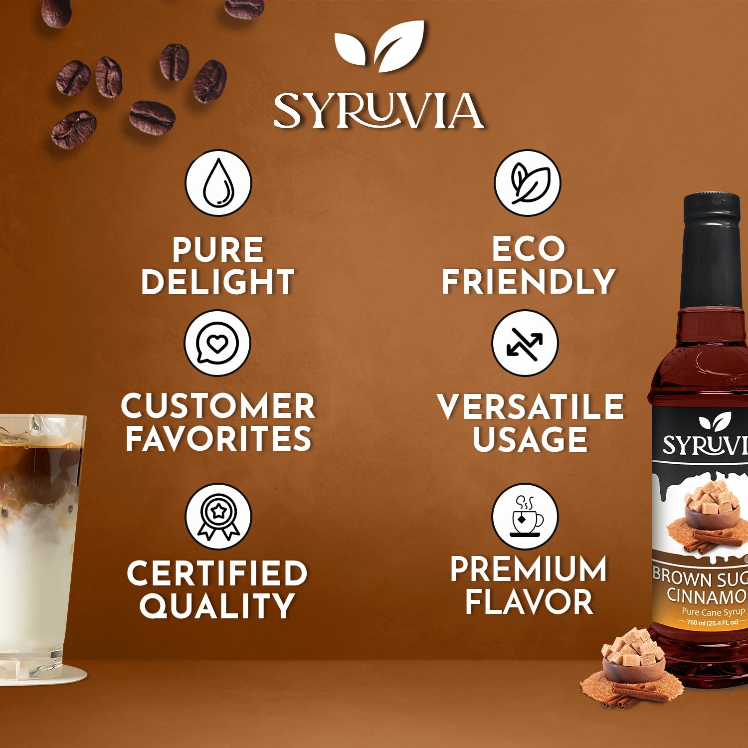 - Crafted in the USA: Made in the USA, Syruvia Brown Sugar Cinnamon Syrup ensures top-quality and freshness in every bottle.