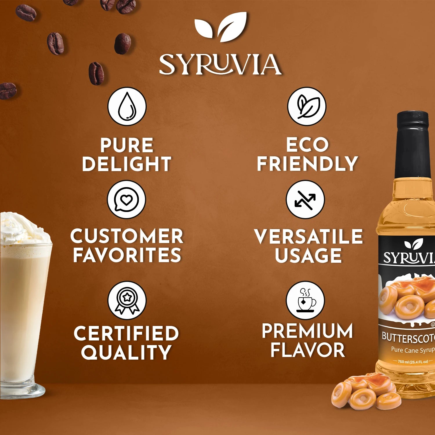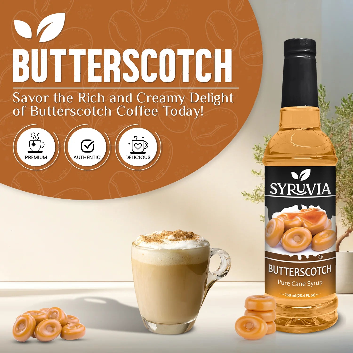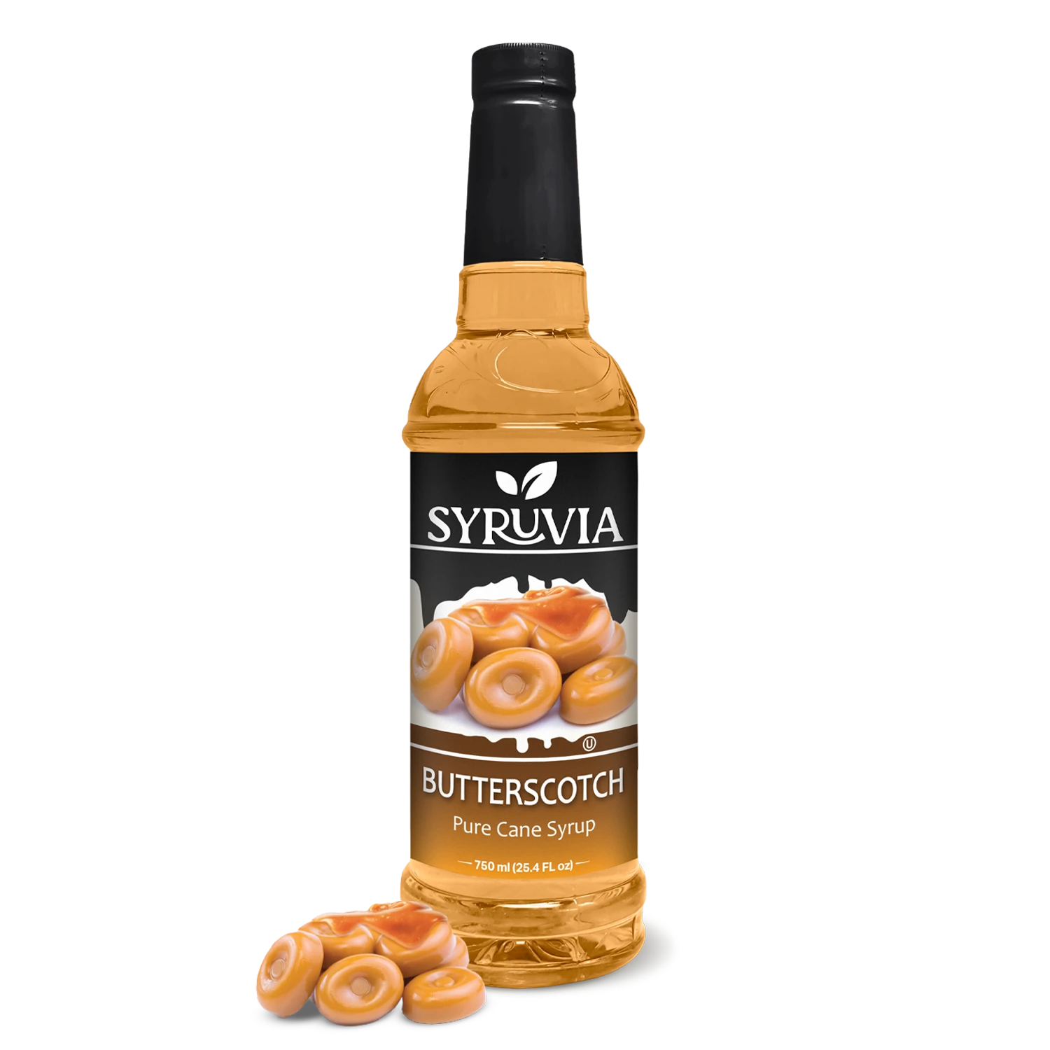 - Butterscotch Syrup: Experience the charming embrace of countryside warmth. Syruvia’s Butterscotch Syrup carries the cozy, aromatic scent of sweet Butterscotch creating a homely mood in every cup.