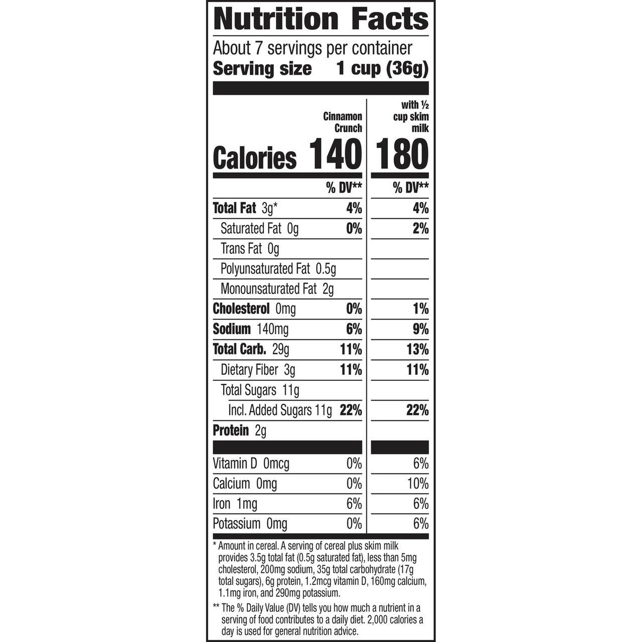 The ingredients for Cascadian Farm Organic Cinnamon Crunch Cereal are grown without the use of synthetic pesticides, chemical fertilizers or genetically engineered ingredients. Cascadian Farm organic foods contain no artificial flavors or artificial preservatives. Cascadian Farm’s organic farming methods help protect and nurture the environment.Cascadian Farm Organic Cinnamon Crunch Cereal:USDA organicYummy organic whole grain squares lightly sprinkled with cinnamon and sugar11 grams of whole grain per serving (at least 48g recommended daily)Good source of fiberNo artificial flavorsKosher