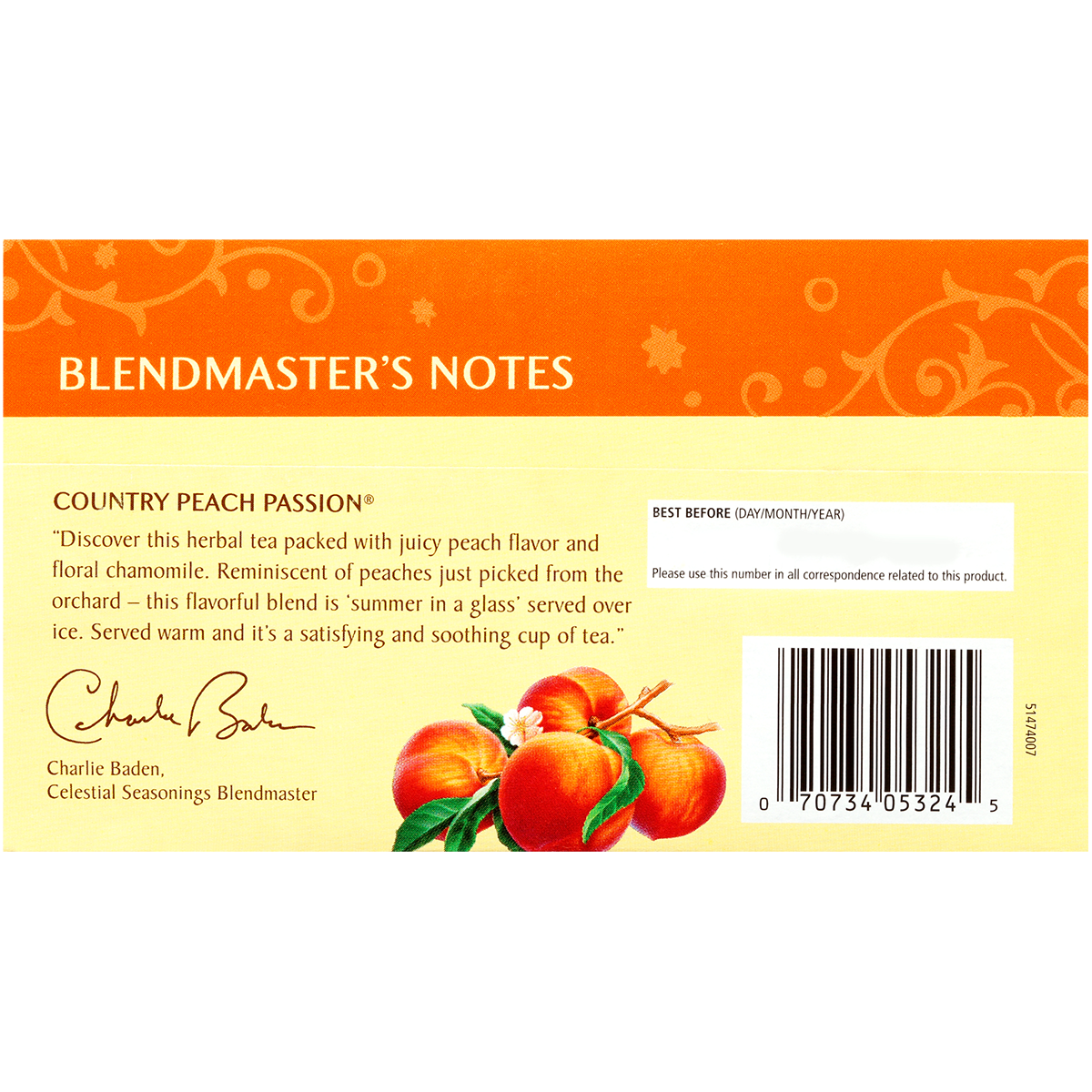 Celestial Seasonings Country Peach Passion Herbal tea 20 Tea Bags (Pack of 6 Boxes)