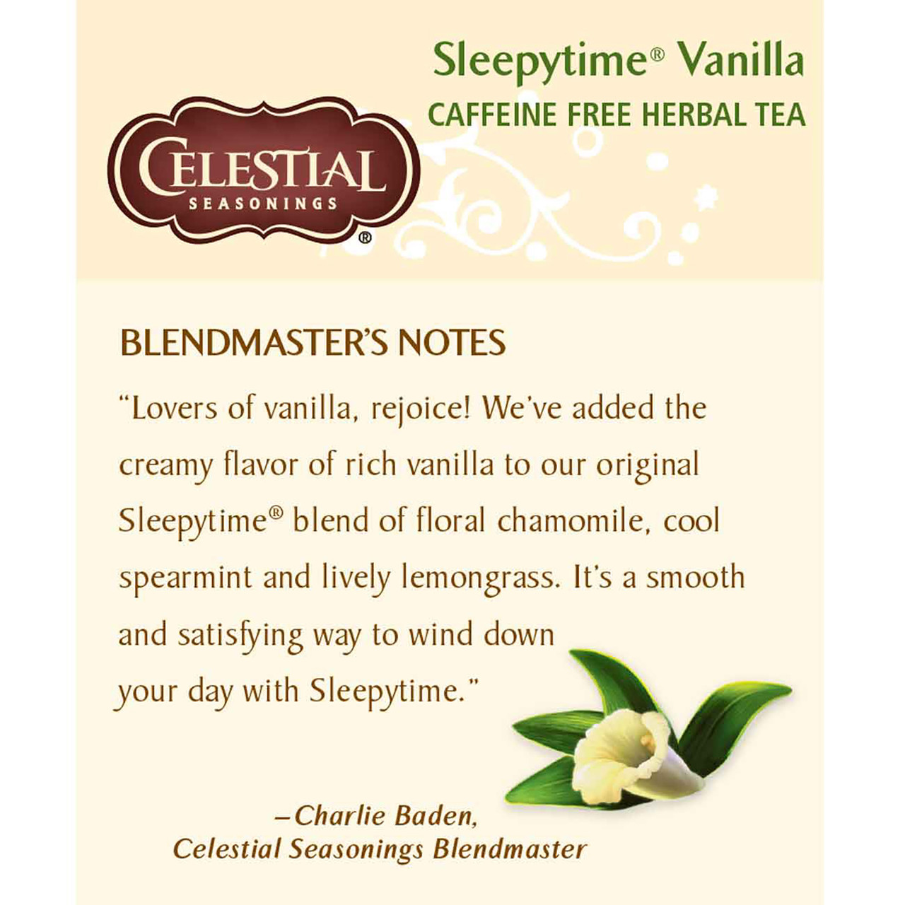 Vanilla Lovers, Rejoice! We’ve Added The Creamy, Nutty Flavor Of Rich Vanilla To Sleepytime?S Beloved Blend Of Floral Chamomile, Cool Spearmint And Lively Lemongrass. With Its Comforting Aroma And Perfectly Balanced Flavor, Sleepytime Vanilla Is An Exquisite Tea.: