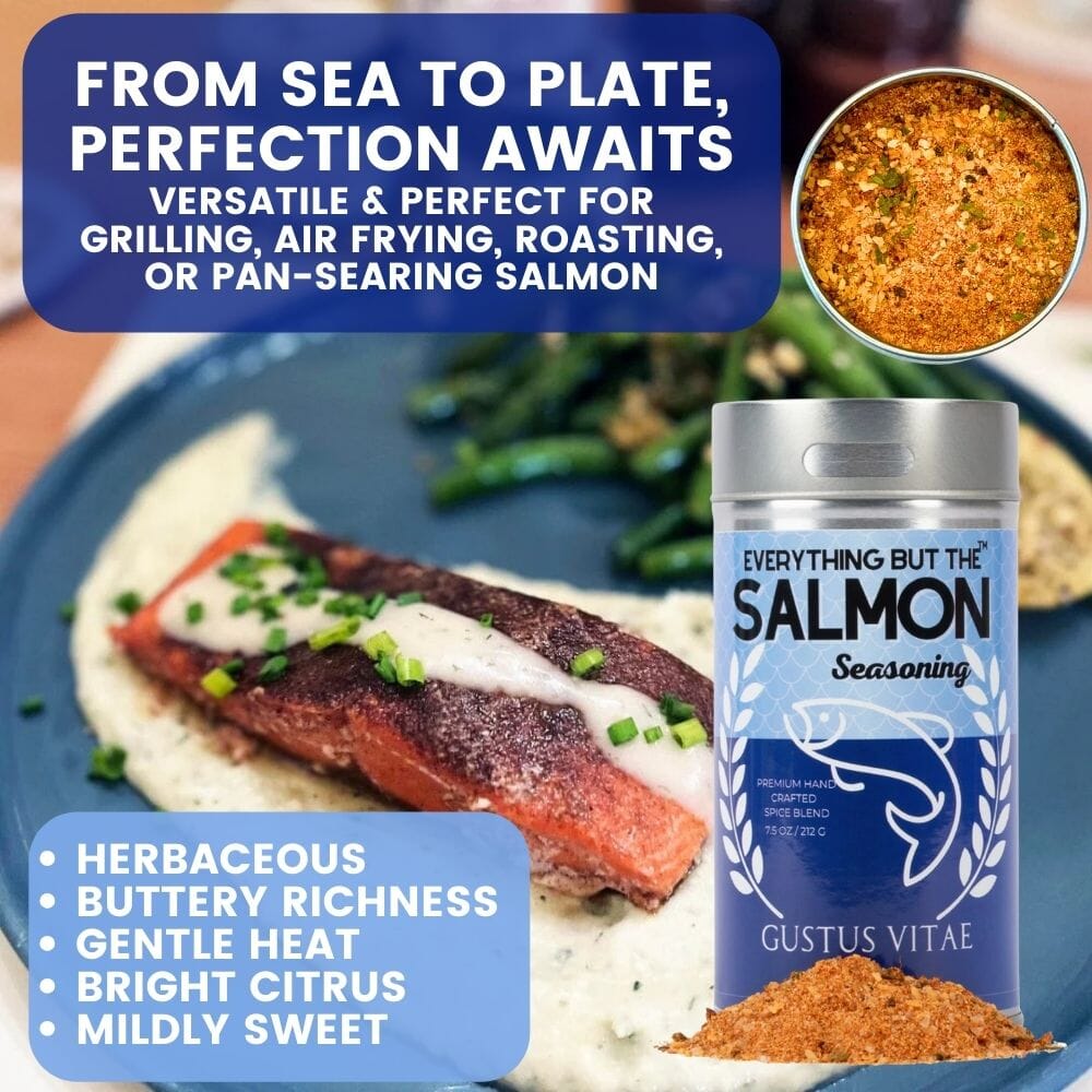 - Everything But The Salmon Seasoning — Bright herbs with gentle sweetness; ideal for salmon, seafood, and roasted vegetables.