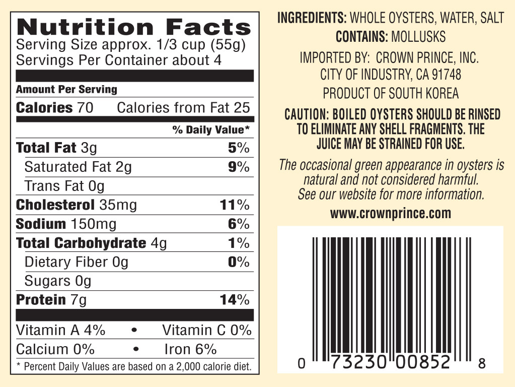 CROWN WHL BOILED OYSTERS ( 12 X 8 OZ )