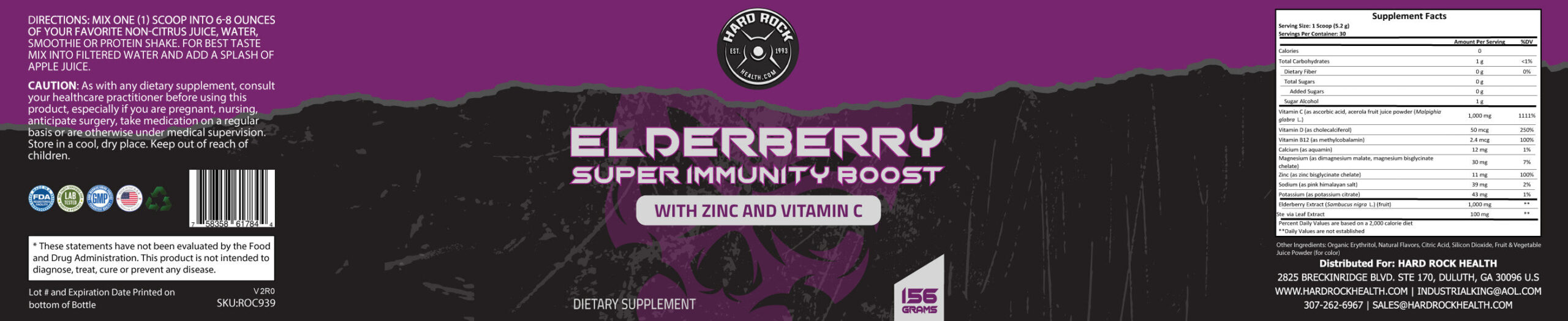 Our Elderberry Immunity Booster is a very efficient supplement that utilizes Elderberry to boost immunity.  Originally manufactured in the USA, Hard Rock Health® Elderberry Immunity Booster is a must-have supplement for living a healthy life.