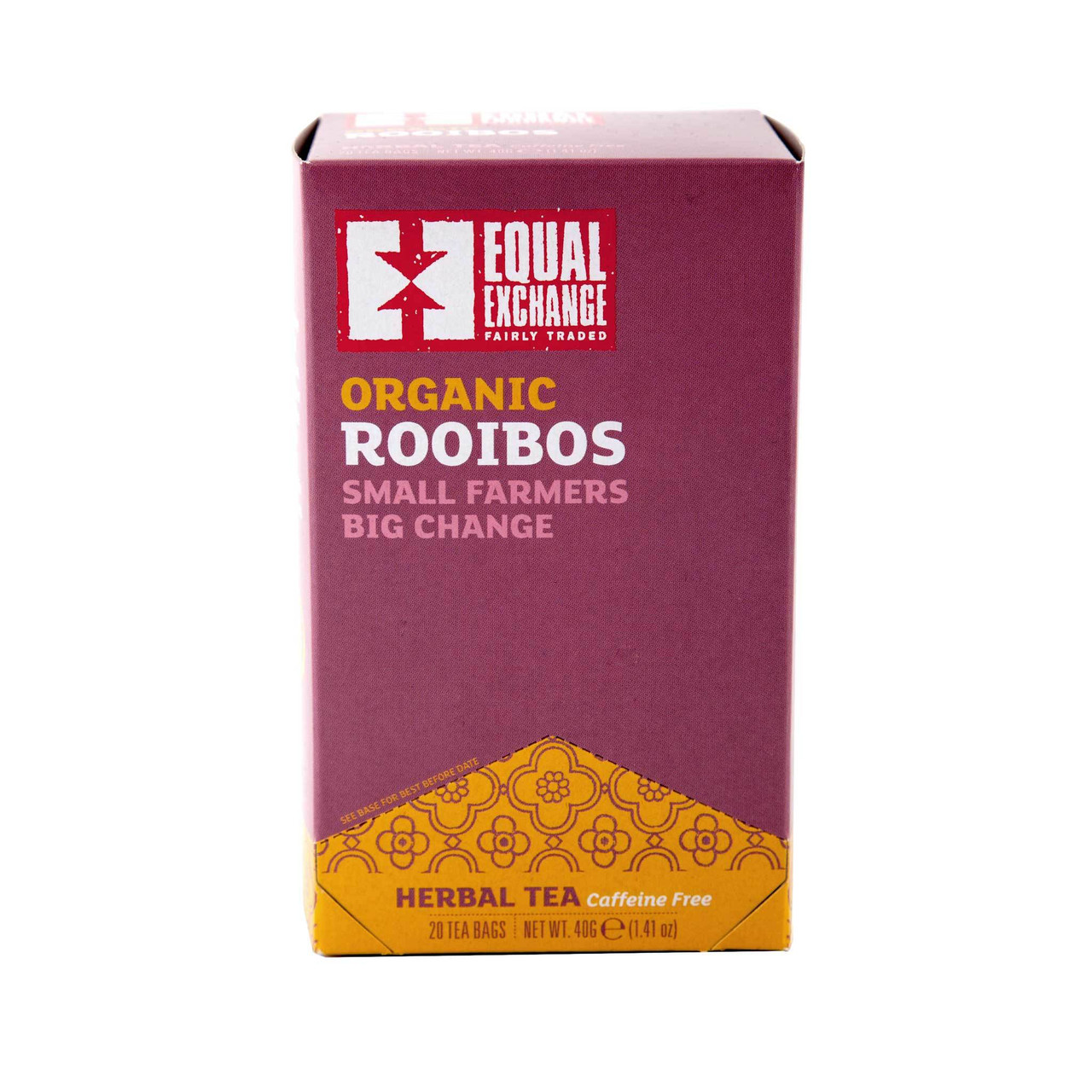 Save On Equal Exchange Herbal, Rooibos Tea (6/20 Bag).This Botanical Infusion Of The Rooibos Plant From South Africa Has The Flavor Of Tea But Is Surprisingly Caffeine Free. 20 Tea Bags Per Box. Please Check The Manufacturers Label For Ingredients Before Use.