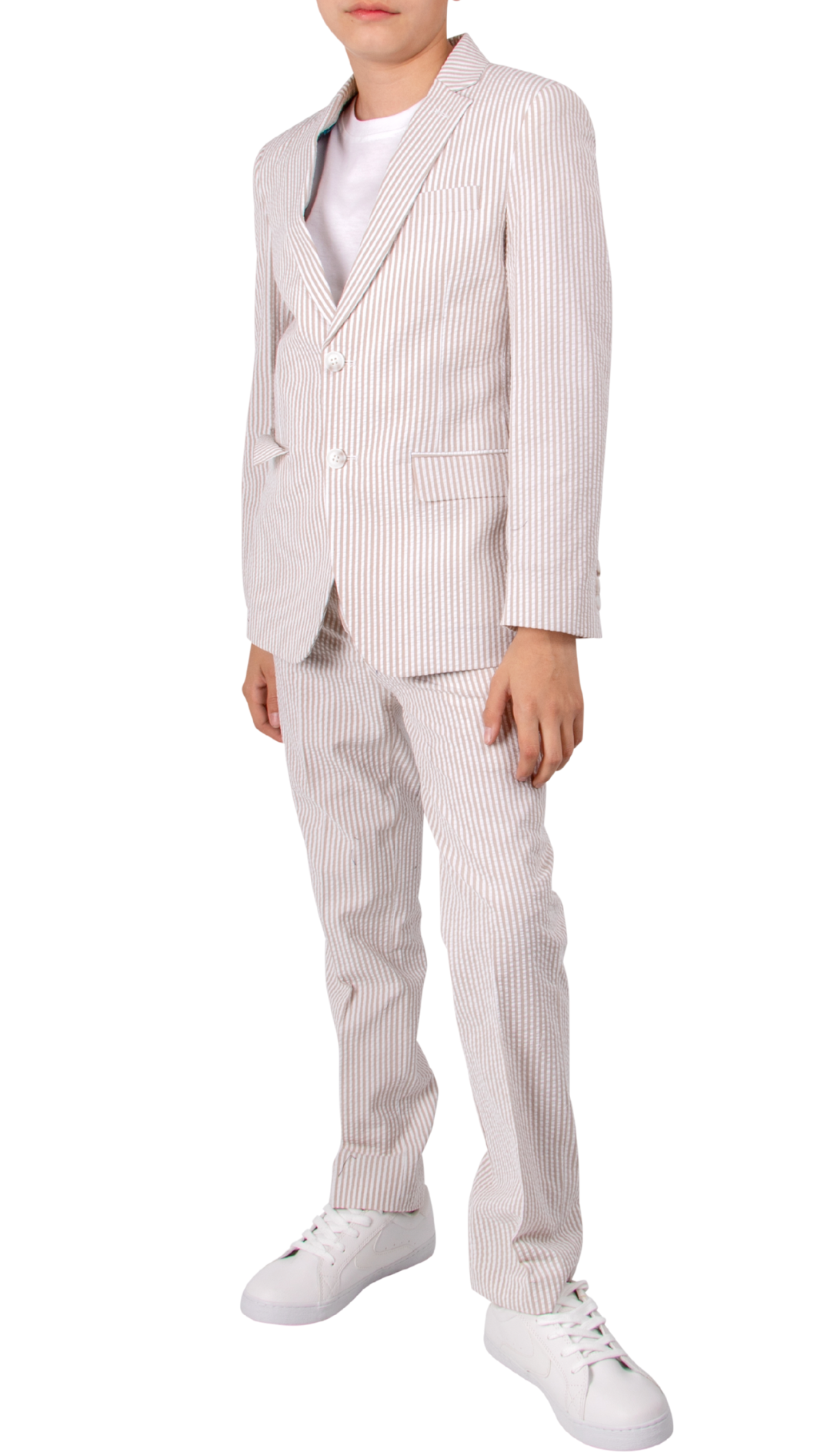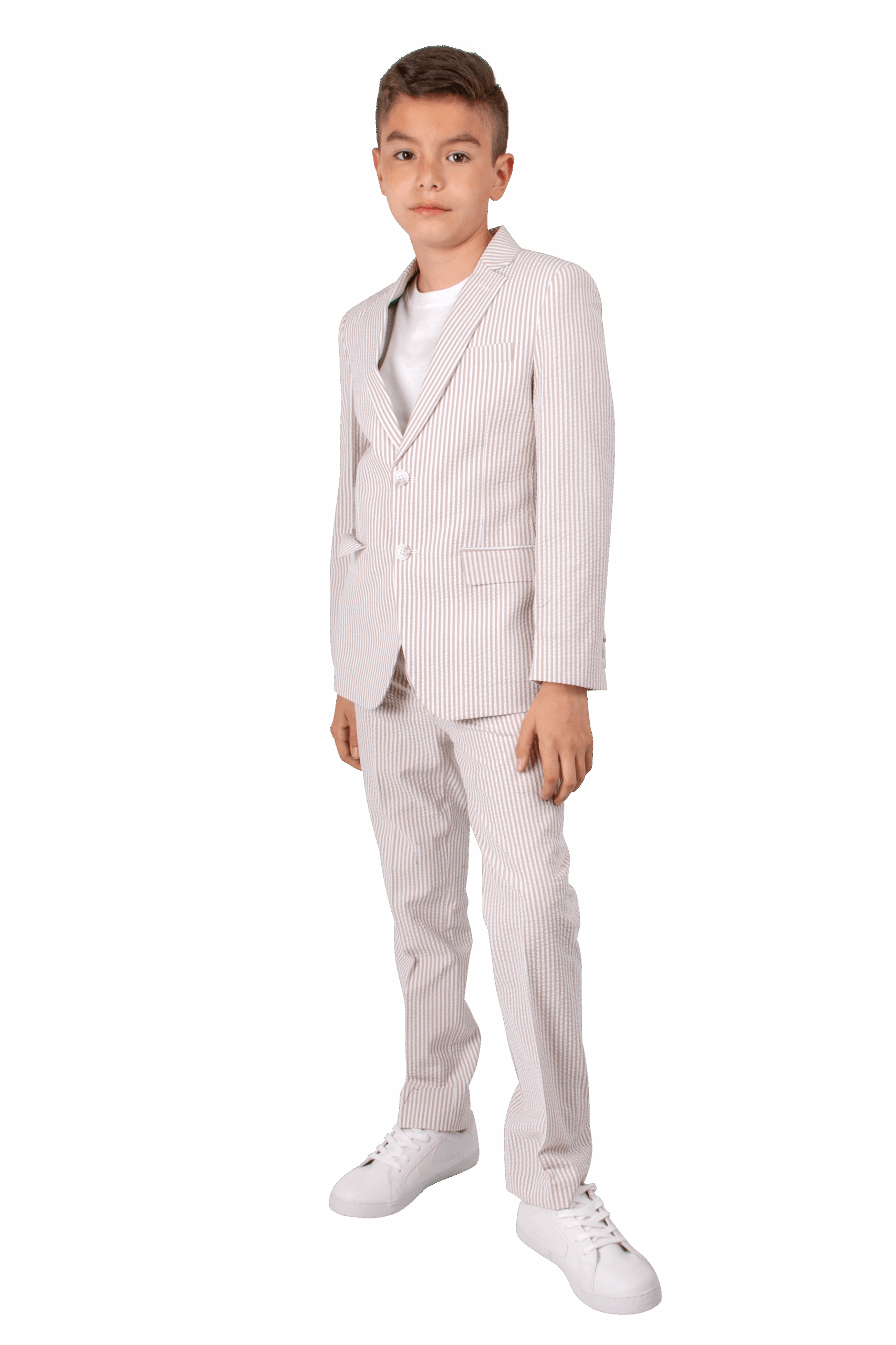 Ferrecci Boys Seersucker 2pc Suit Set Tan