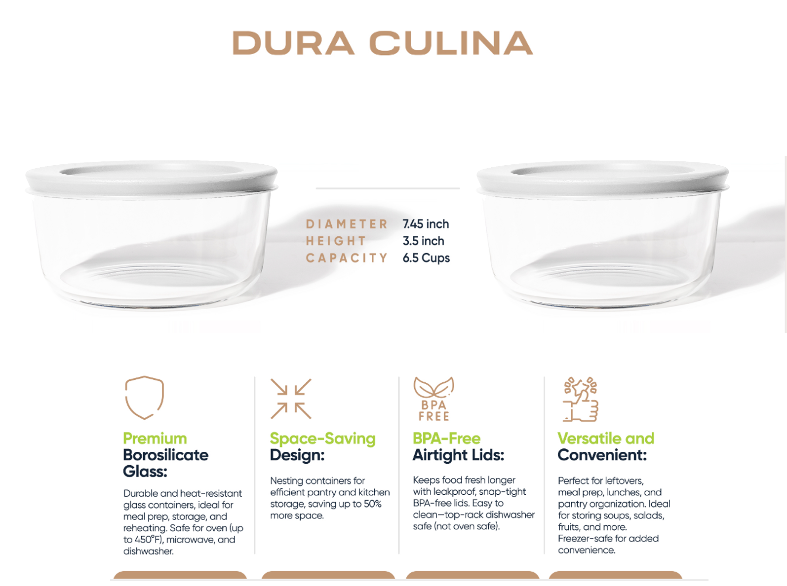 • Premium Borosilicate Glass: Crafted from high-quality borosilicate glass, these containers are designed to withstand extreme temperatures, making them ideal for both storing and reheating your favorite dishes.