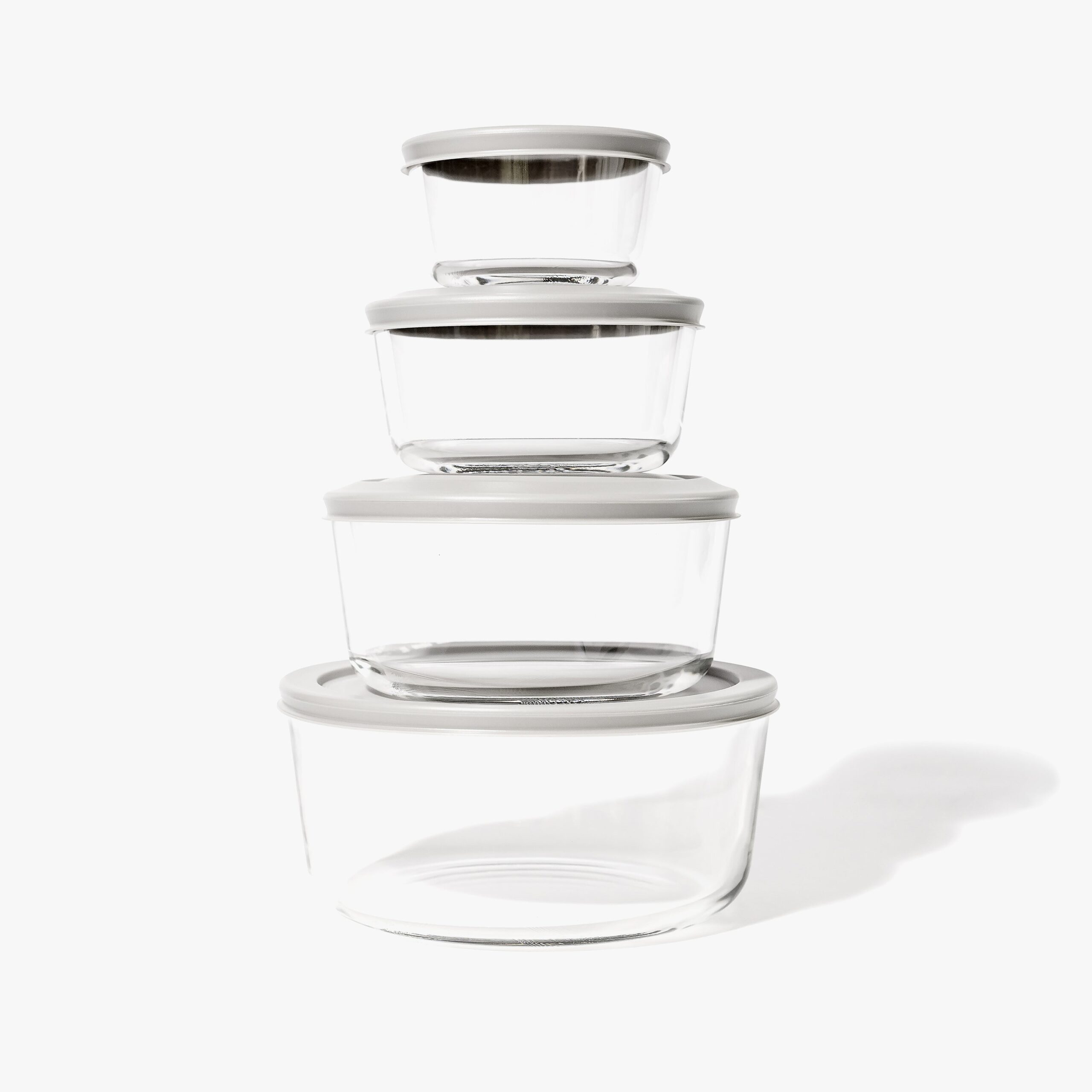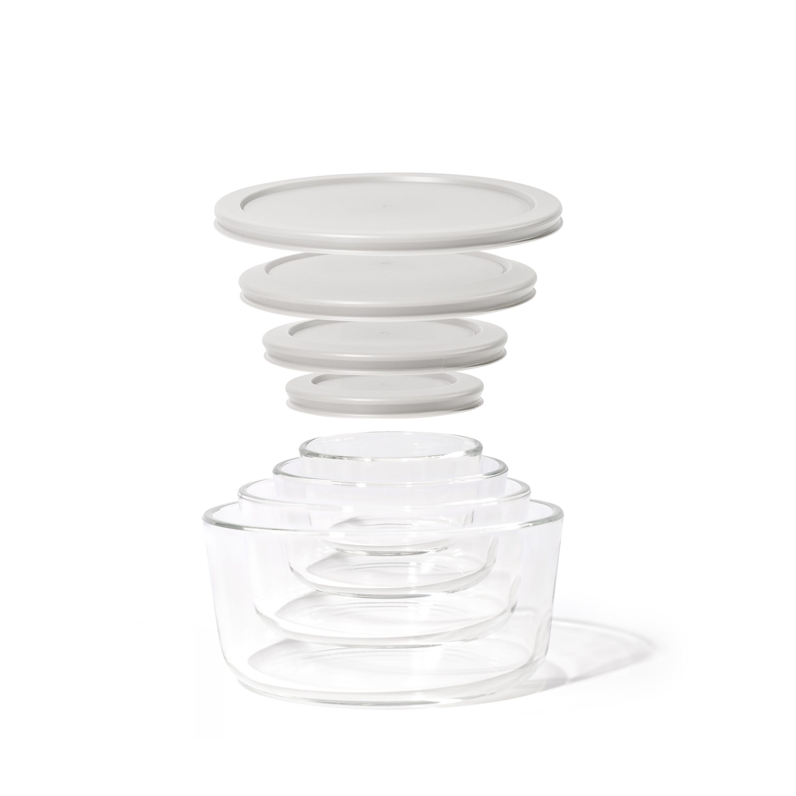 Glass Food Storage Containers – 8 Piece (4 Containers + 4 Lids) Round Nesting Space-Saving Set