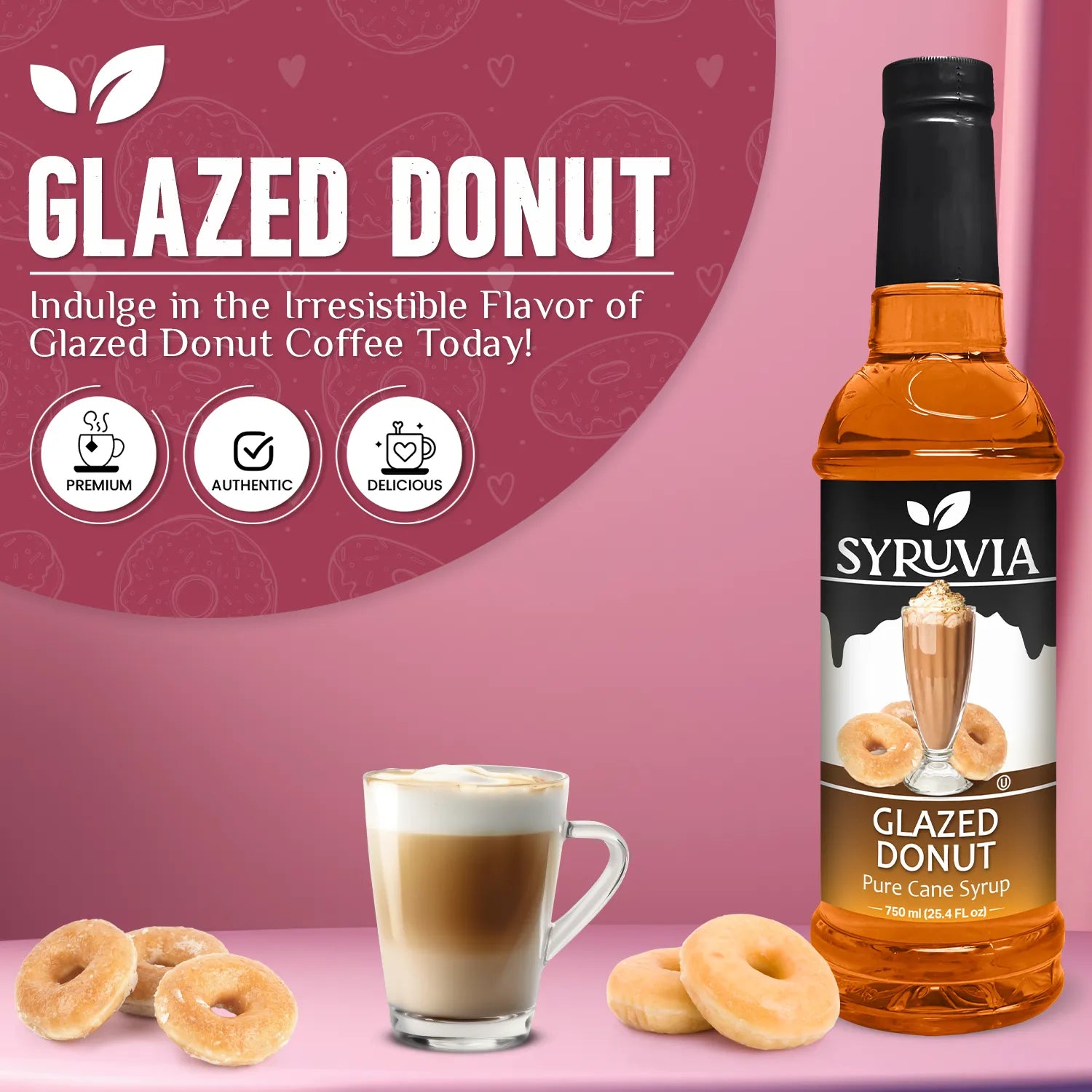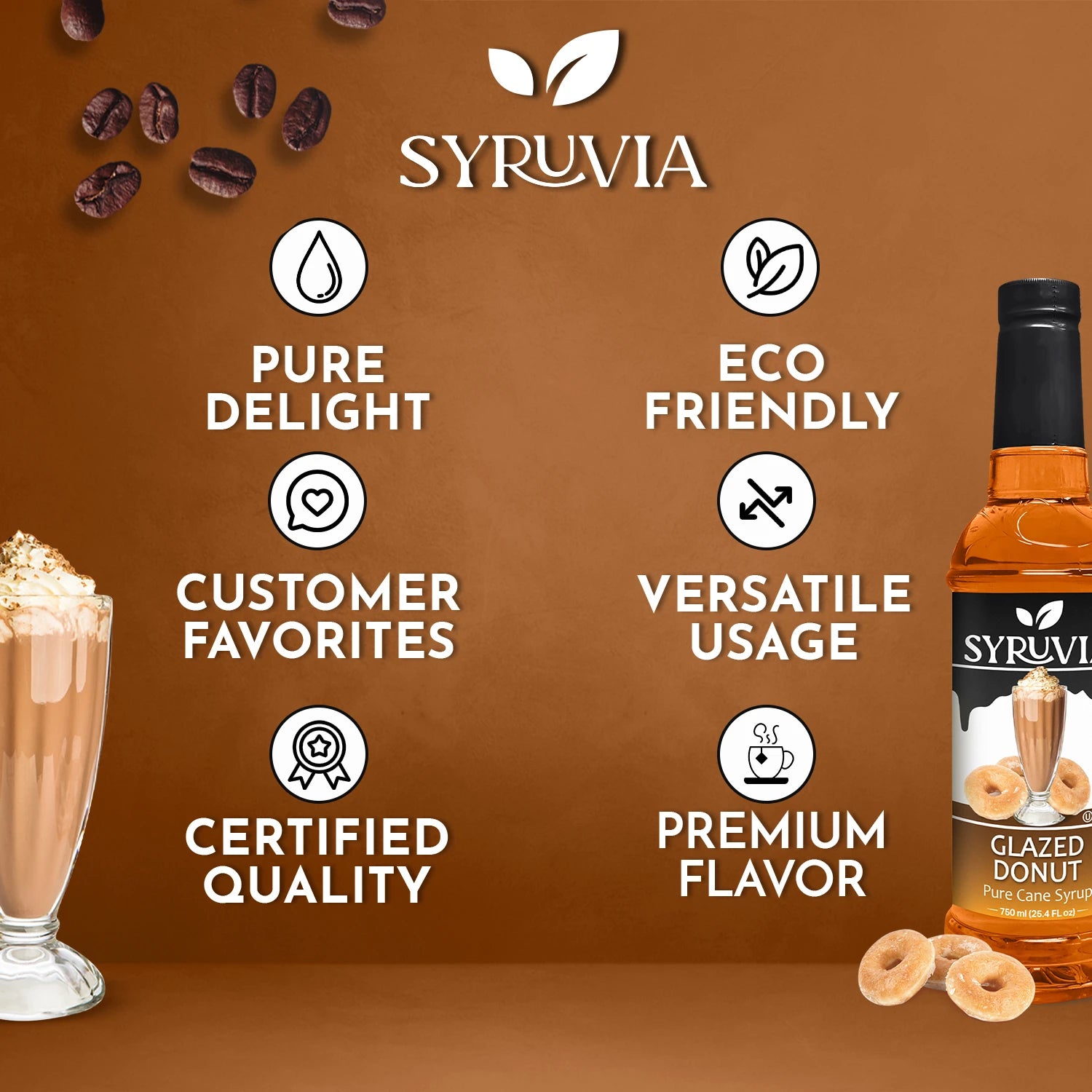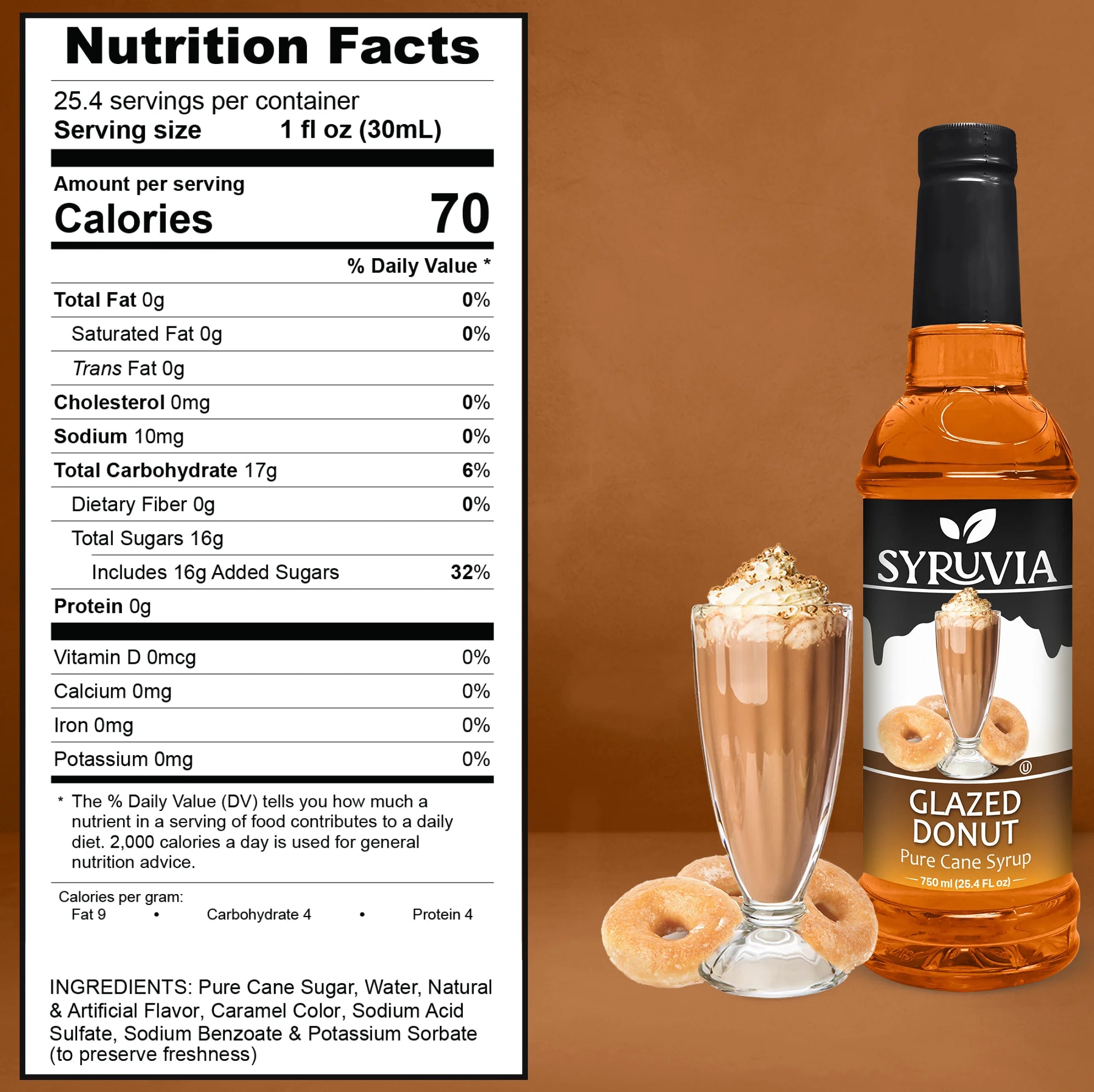 - Pure Cane Sugar: Syruvia Glazed Donut Syrup is sweetened with pure cane sugar for a natural, authentic sweetness.