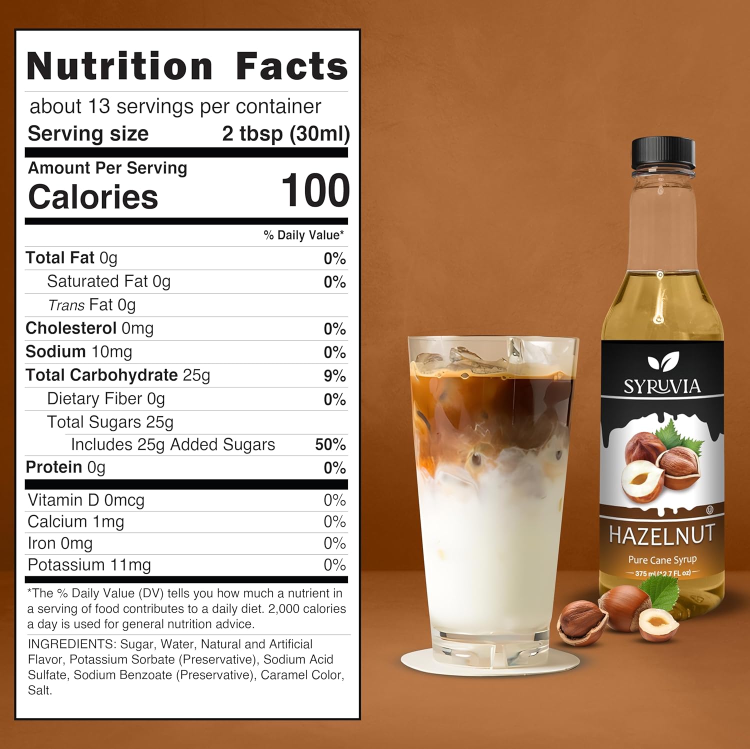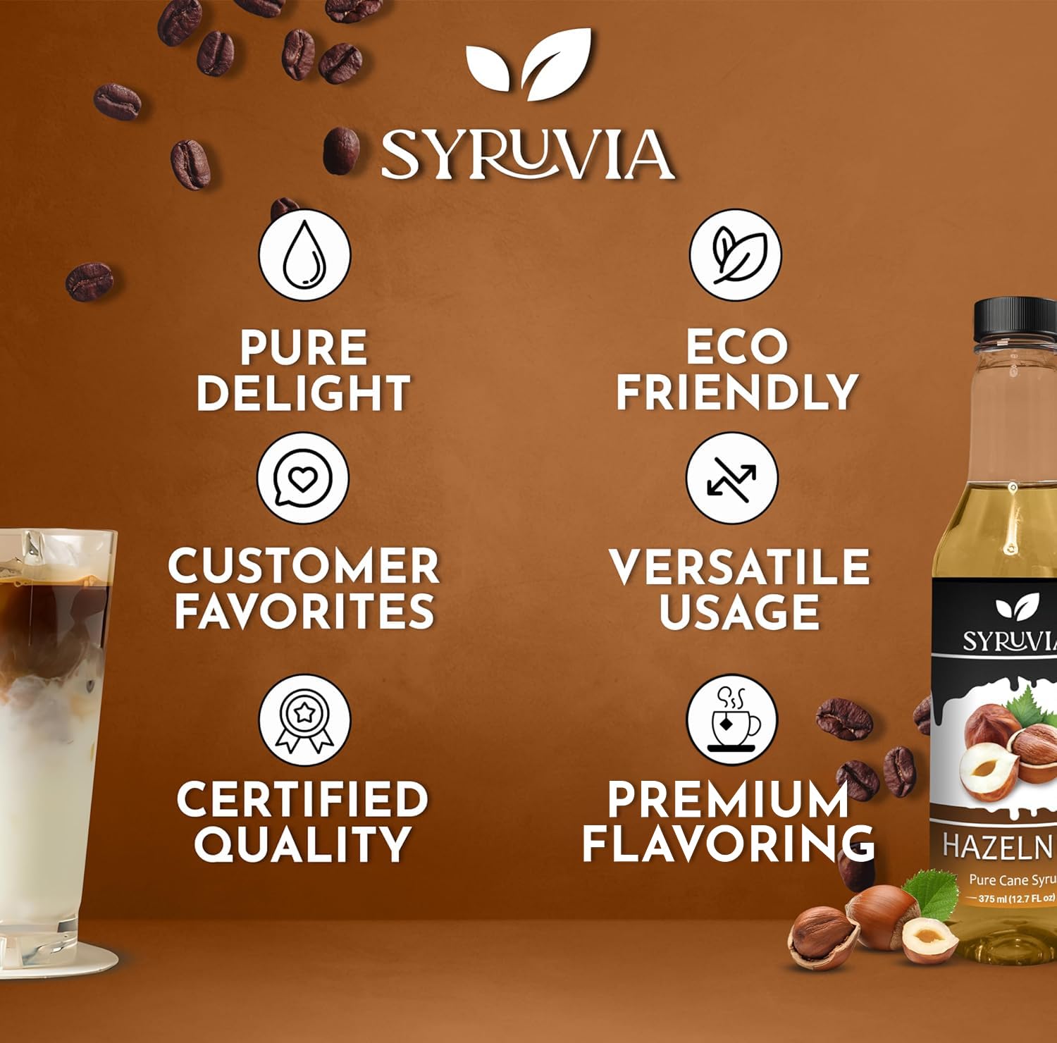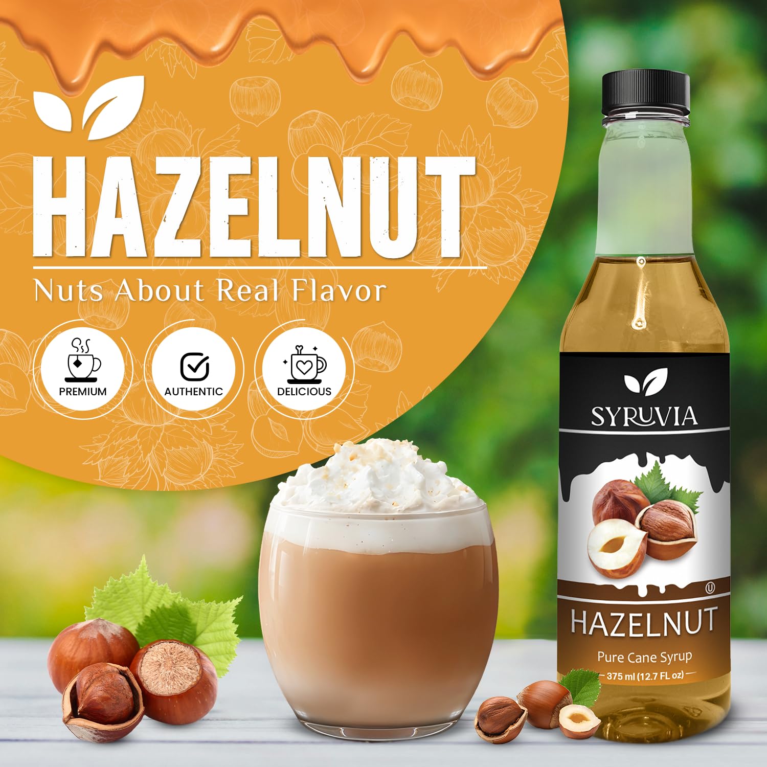 - Naturally Sweetened: Syruvia Hazelnut Syrup uses pure cane sugar to deliver a genuine, balanced sweetness without artificial additives.