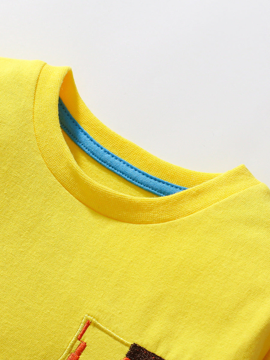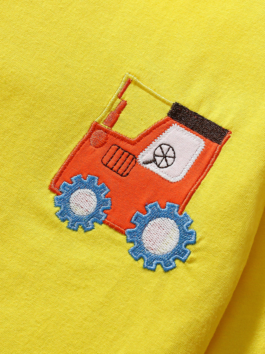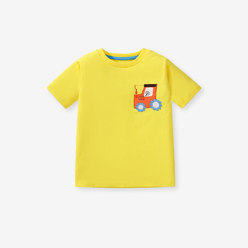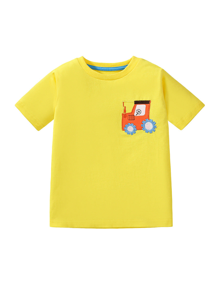 Kids’ Tractors Cartoon Pattern Short Sleeves T-shirt in European and American Style for Summer