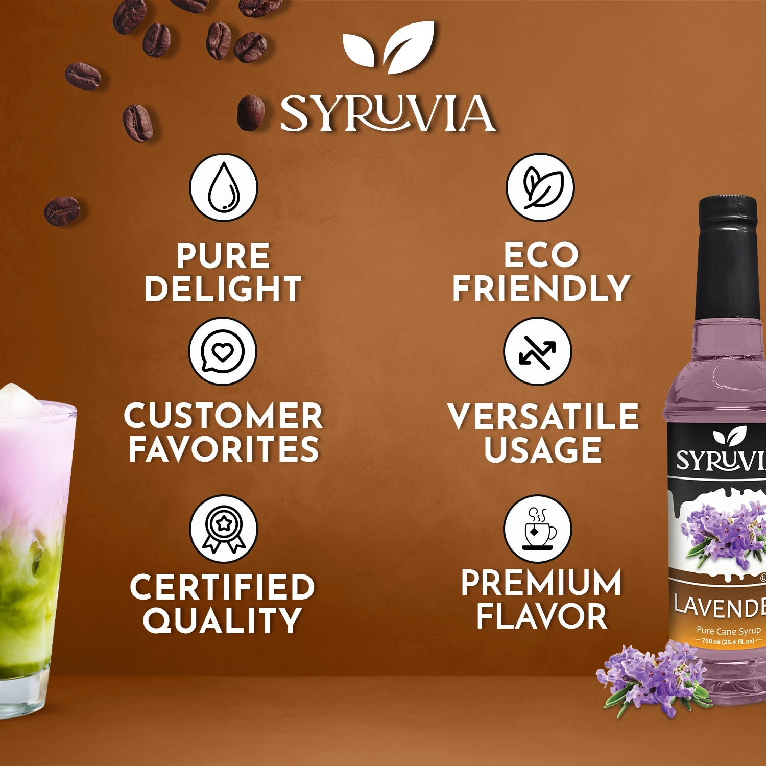 Loved for its soft floral flavor and versatility, Syruvia’s Lavender Coffee Syrup adds a touch of elegance to every cup.