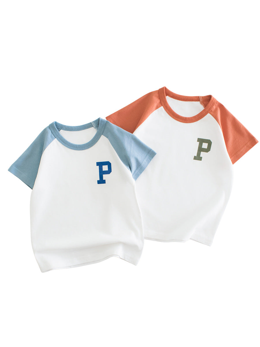 Letter Printing Boys’ Patchwork T-Shirt In European And American Style For Summer