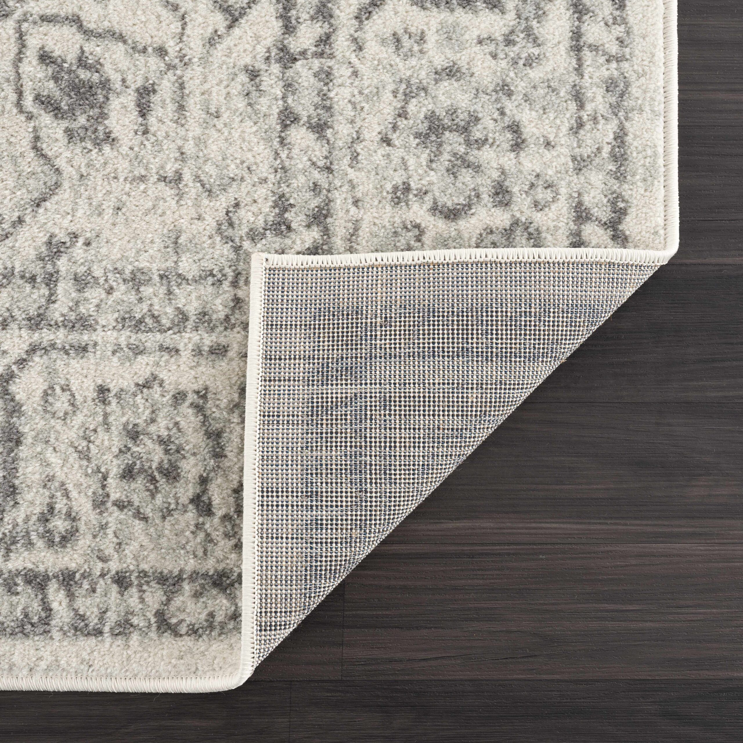 About: This Persian-style updated traditional rug is perfect for living rooms, bedrooms, or any other indoor space. It features a beautiful oriental pattern in a minimalist style with a stunning array of boho vintage distressed colors, including grey, beige, and white. |