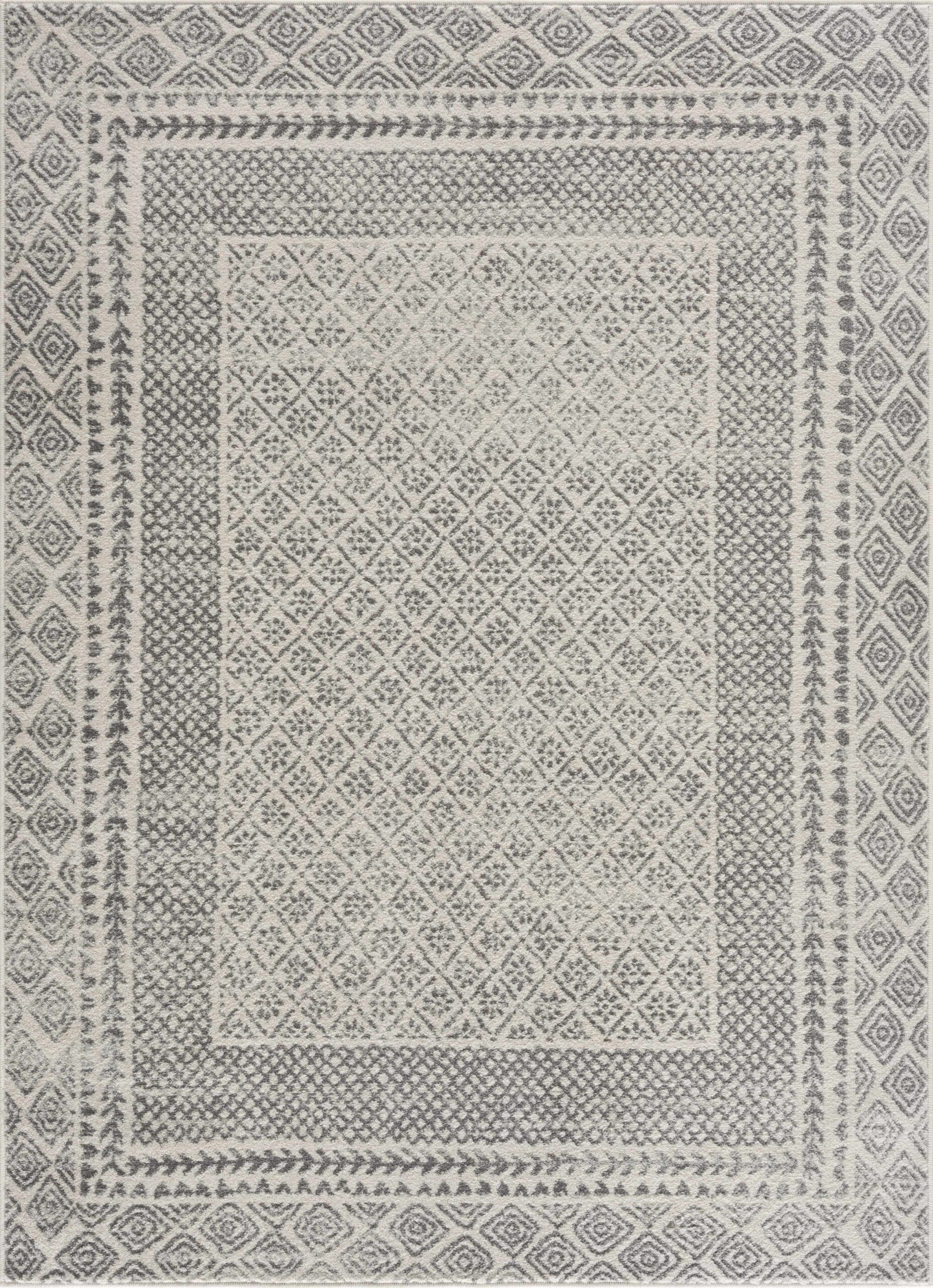 About: This stylish rug features a modern farmhouse-inspired design with minimalist borders in a variety of different patterns. The beige and gray tones are sure to complement any color palette, and the Moroccan-inspired design is perfect for creating an inviting and welcoming space. This rug is sure to make a statement in your living room or bedroom. |