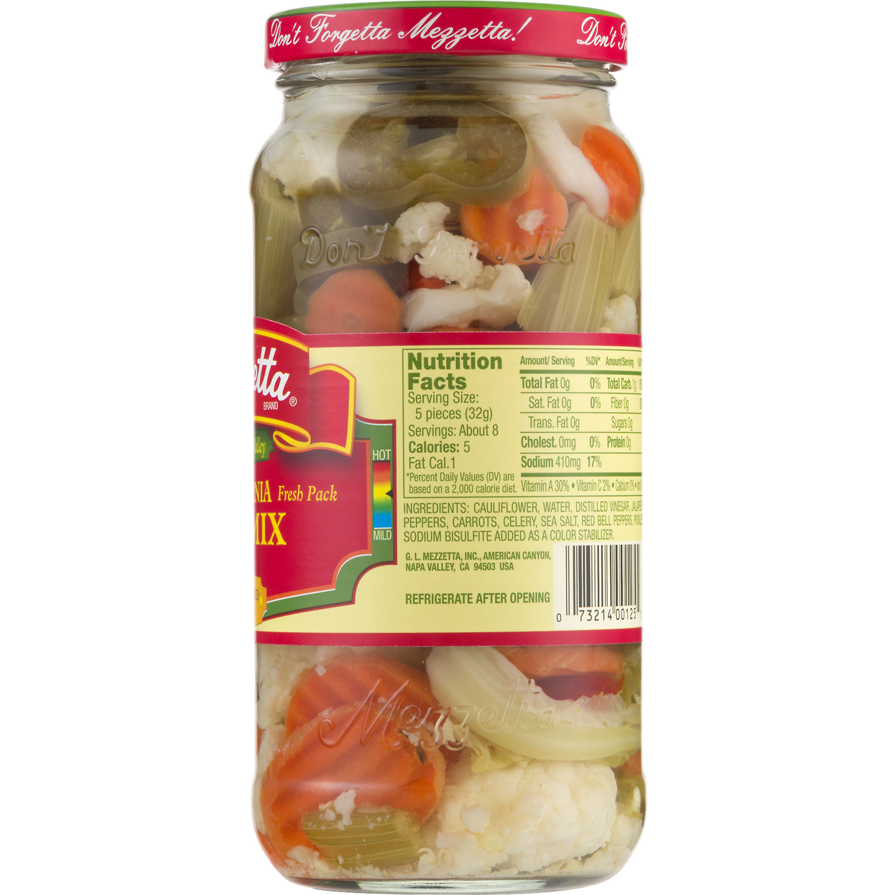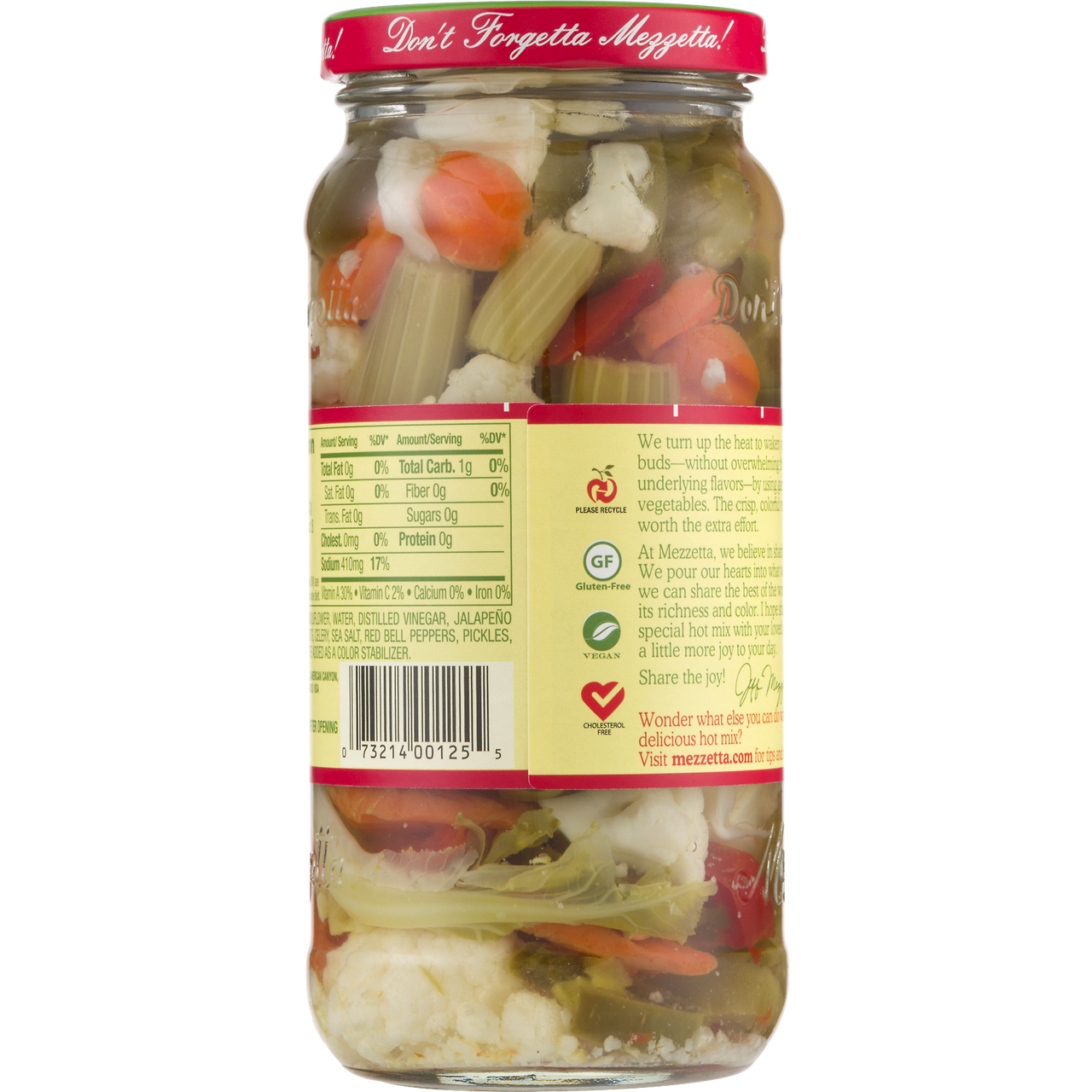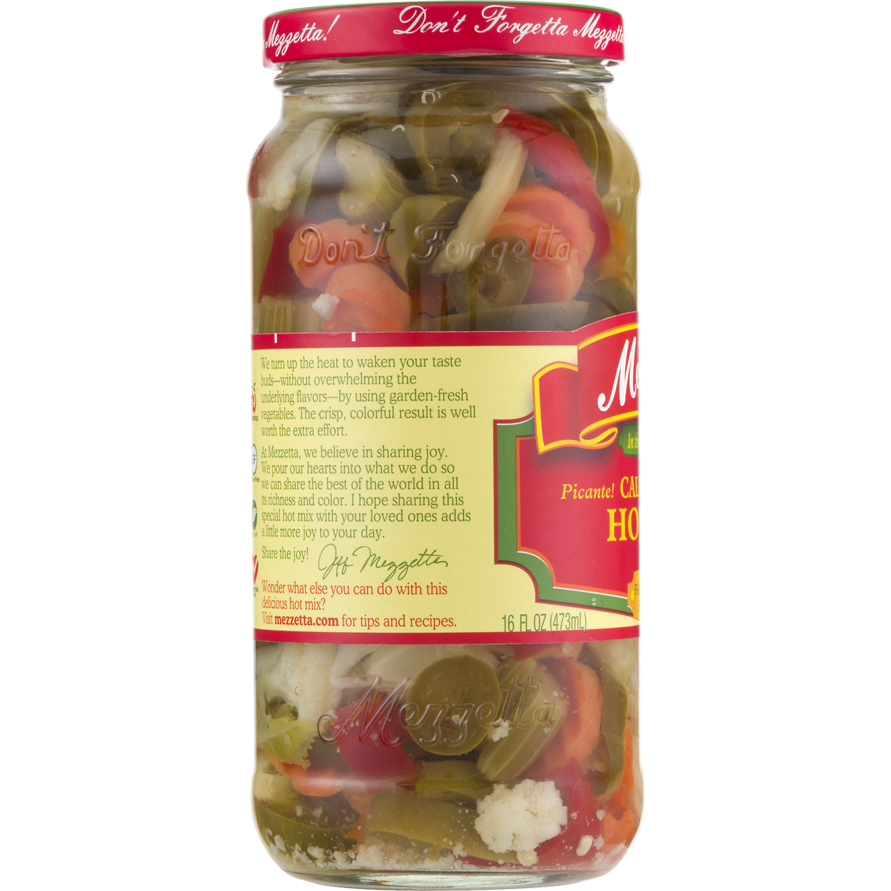 Mezzetta California Hot Mix Vegetables is a milange of carrots, celery, cauliflower, jalapeno and colorful summer veggies. We start with California ripe vegetables and pickle them with jalapeno to add heat and spice. Crisp, tangy and pleasingly spicy, Mezzetta Hot Mix can be served as antipasto, an appetizer or spicy snack. Our Hot Mix is also a great addition to creamy dips.
