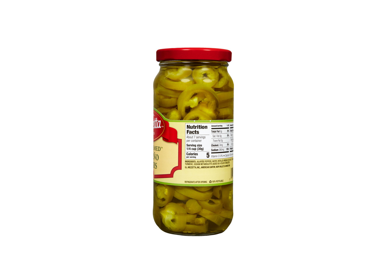 Mezzetta Deli-Sliced Tamed Jalapeno Peppers are sun-ripened here in California. Developed by Texas A&M for Mezzetta, this unique pepper variation delivers a robust flavor without extreme heat. Their tender texture, deep color and crisp flavor are sure to please. Use these savory slices as an ingredient in your favorite south of the border recipes, tucked into a burrito or taco, or as a spicy complement on the side.
